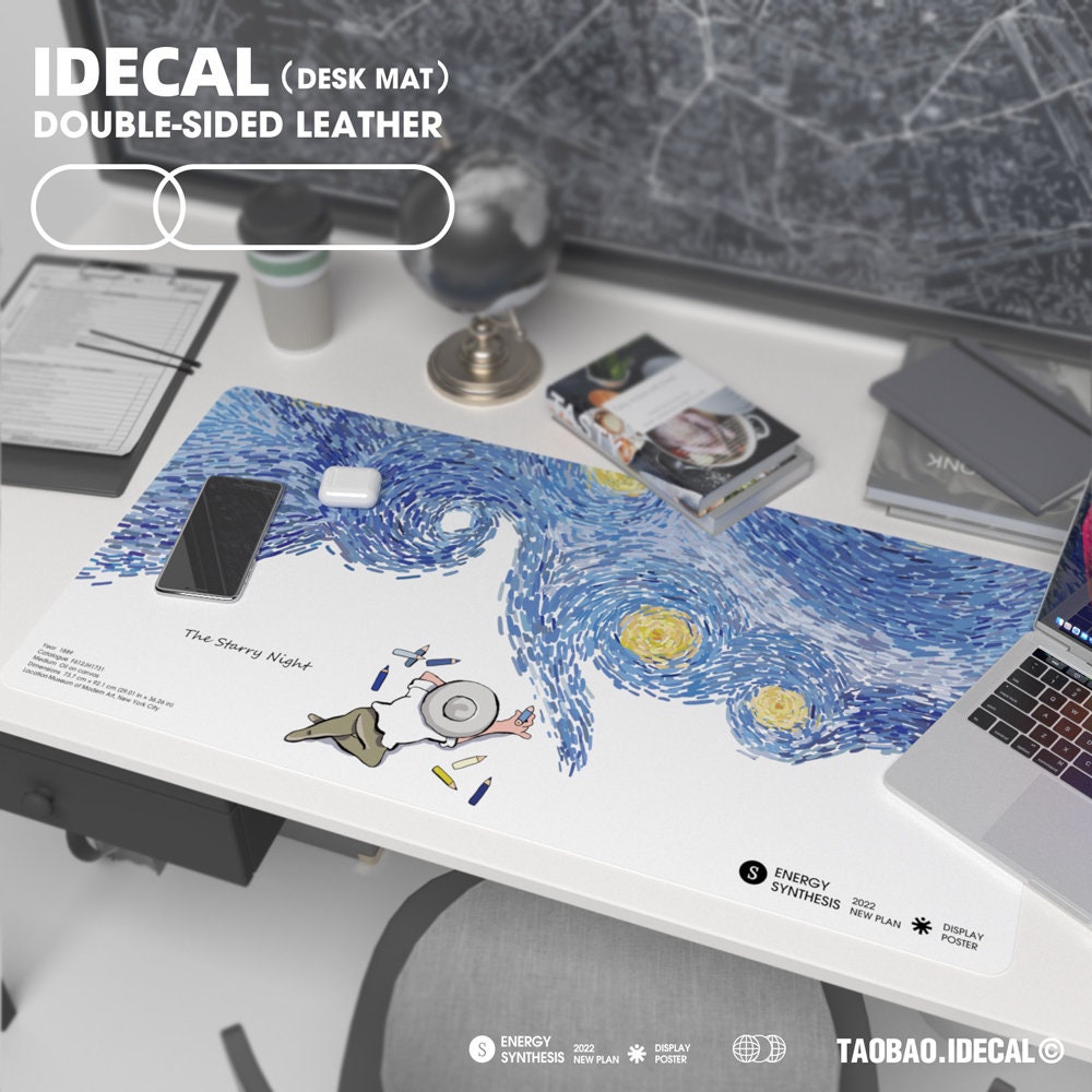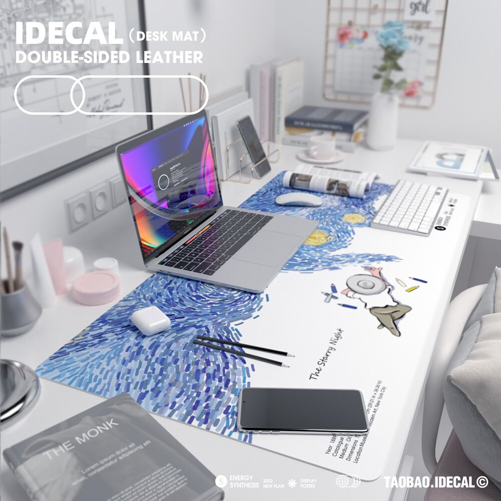 Starry Night Desk Mat: PU Leather, Waterproof Table Pad 3 sizes available