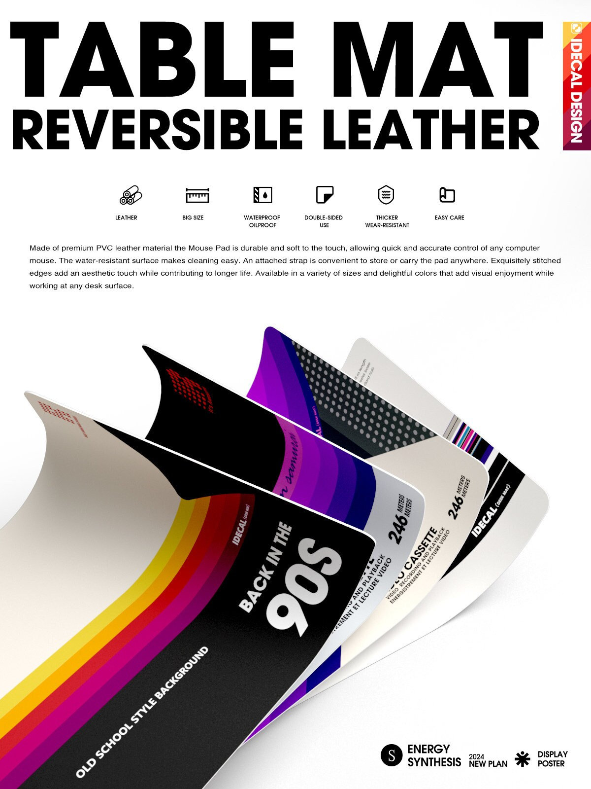 Sunset VHS Desk Mat: Waterproof Leather Mouse Pad 3 sizes available