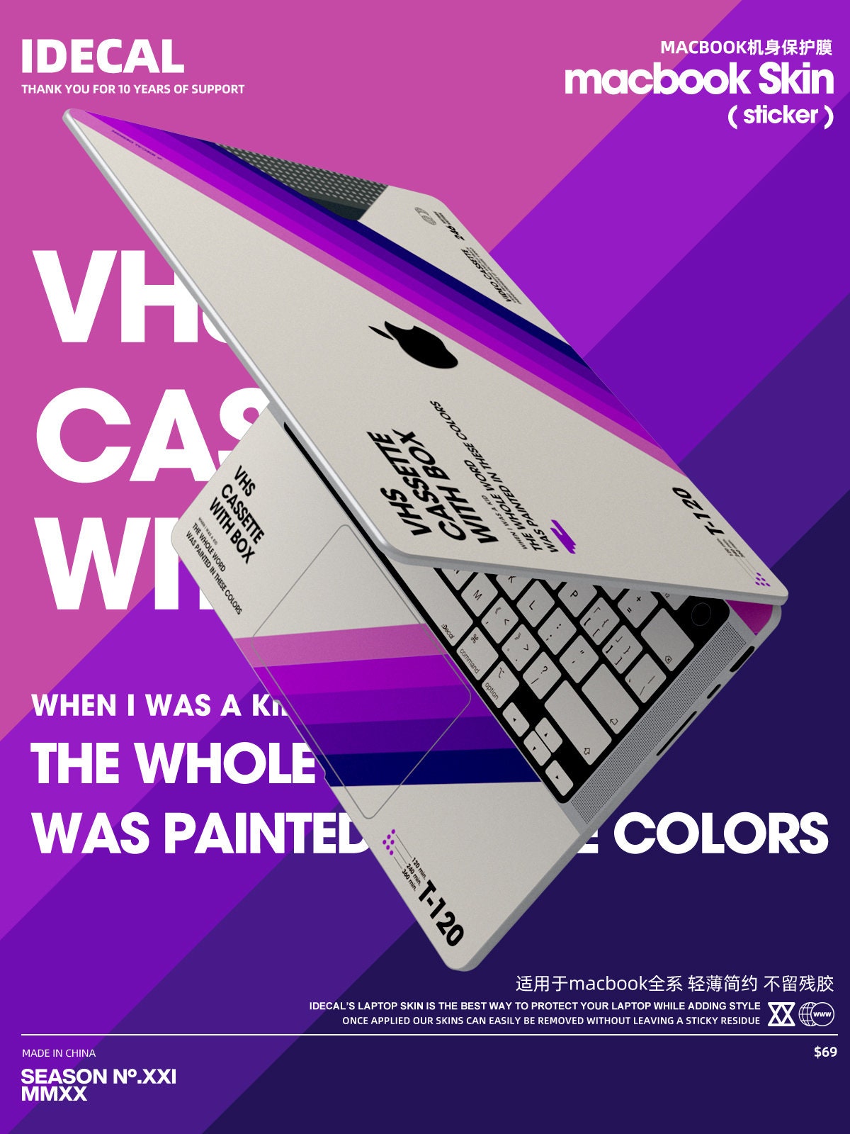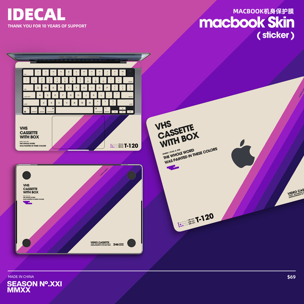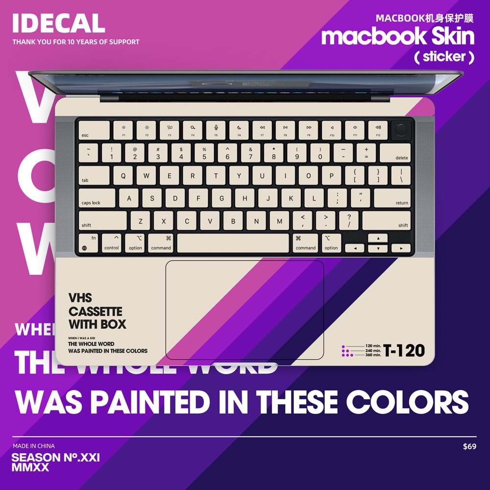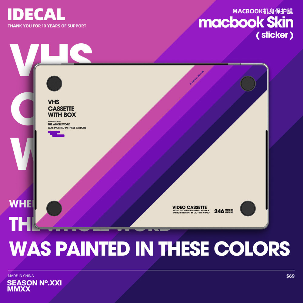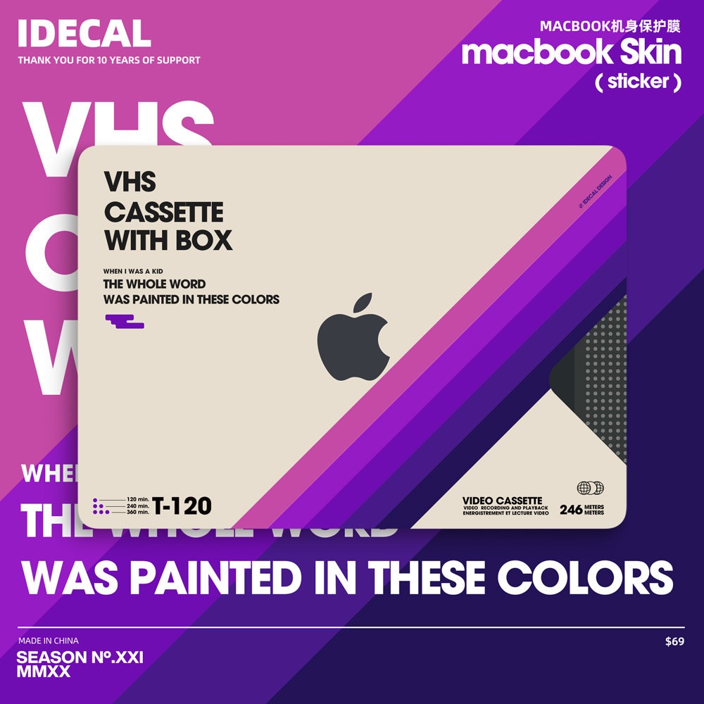Retro VHS Macbook Decal: Retro Vinyl Skin for Macbook Pro14/16 Air13 decal Matte texture, anti-fingerprint customizable