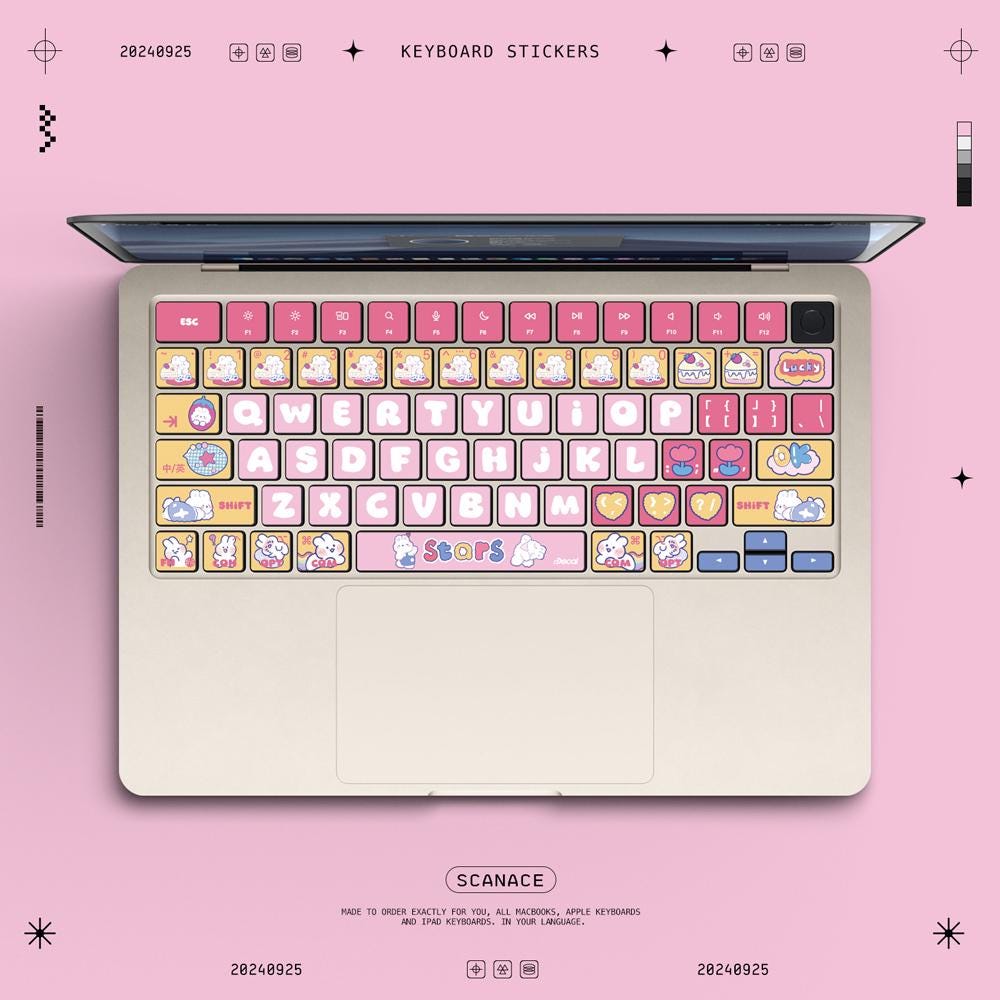Star Rabbit Macbook Keyboard Sticker: Apple Laptop Decal MacBook Air 13" M4 2025 Pro 13 14 16 M4 2024 sticker