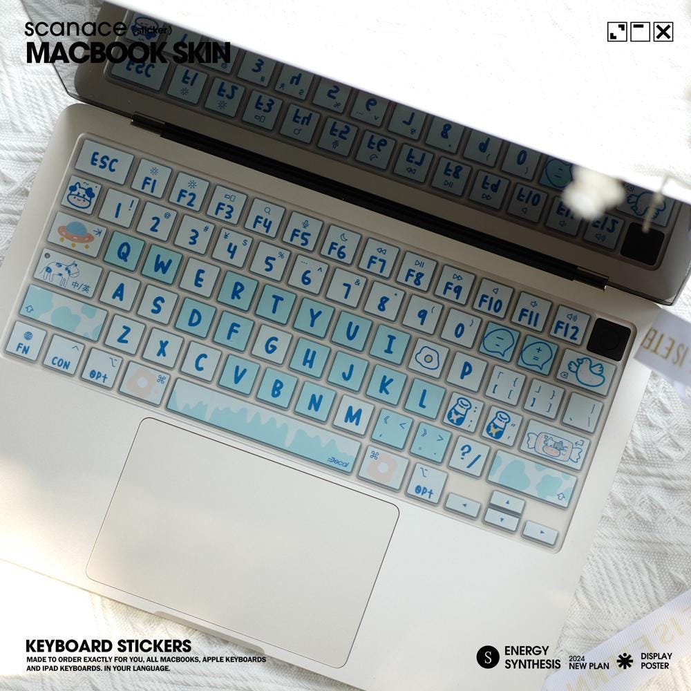 Cute milk style keyboard sticker for Macbook Pro and air Apple Laptop 2023 Pro 2024M3 Macbook Air15 Soft silicone washable Dust-proof film