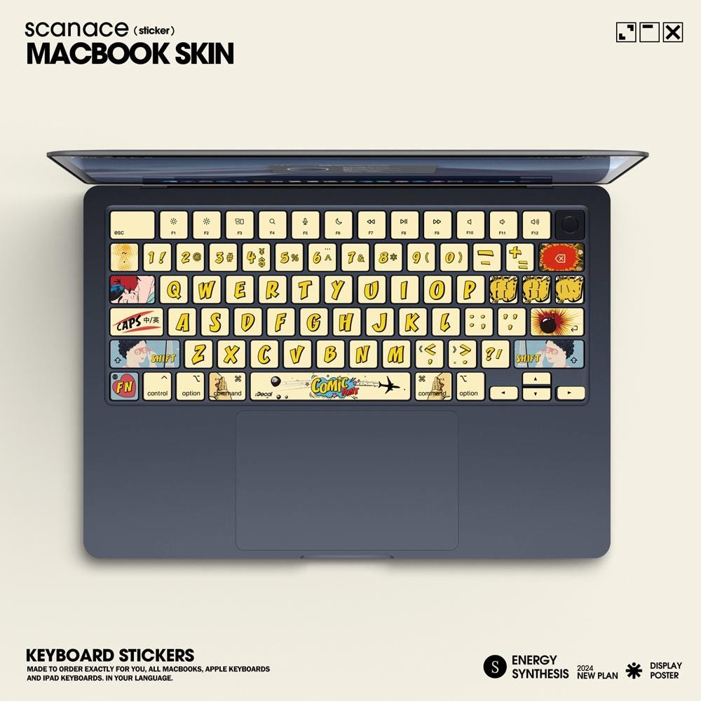 Comic Style Macbook Keyboard Stickers: Vinyl Key Skin