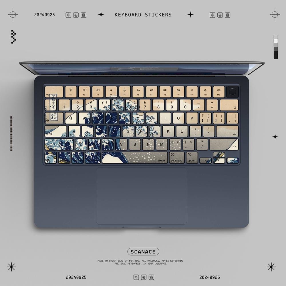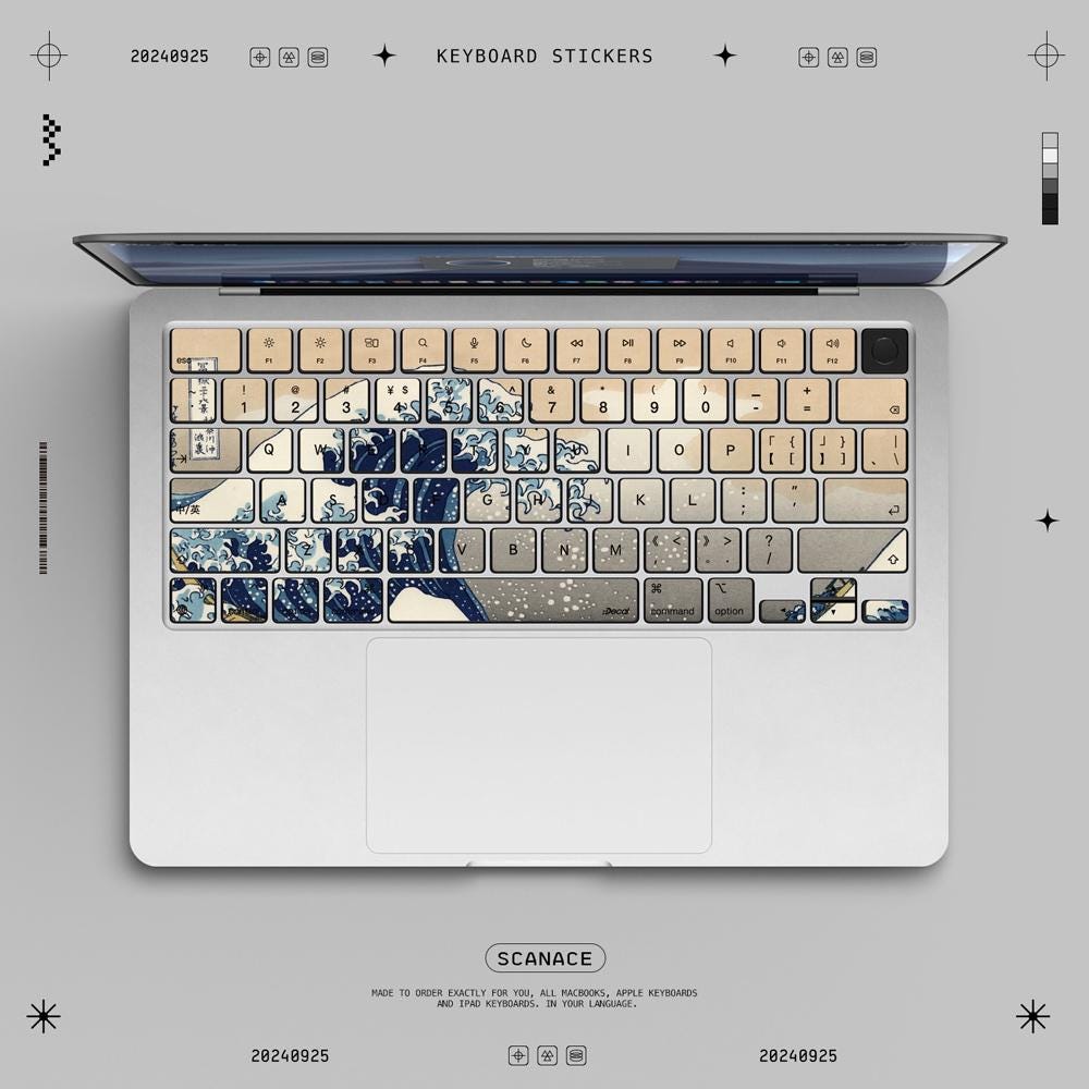 Great Wave off Kanagawa Keyboard sticker for Macbook Pro14/Pro16 Decal for Apple LaptopM1/M2/M3/M4 Macbook Pro 2024Macbook Air15 2992 Air13
