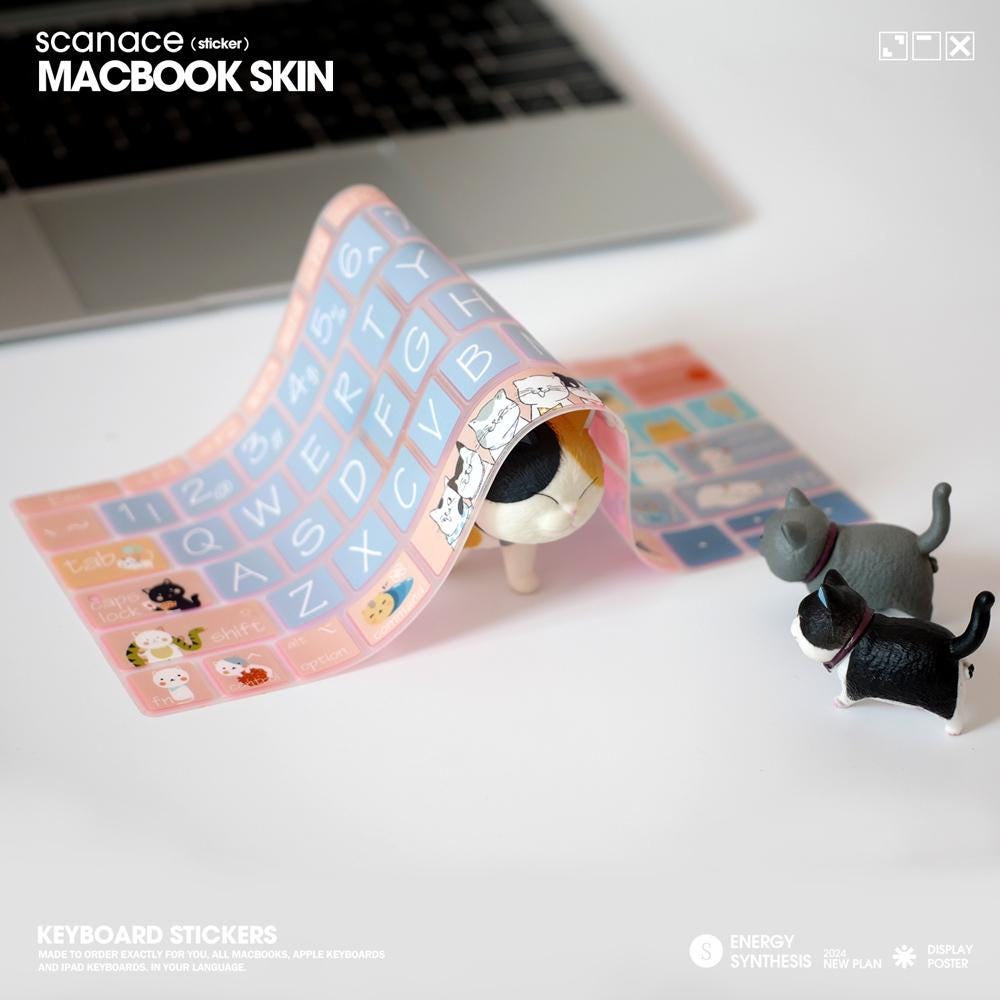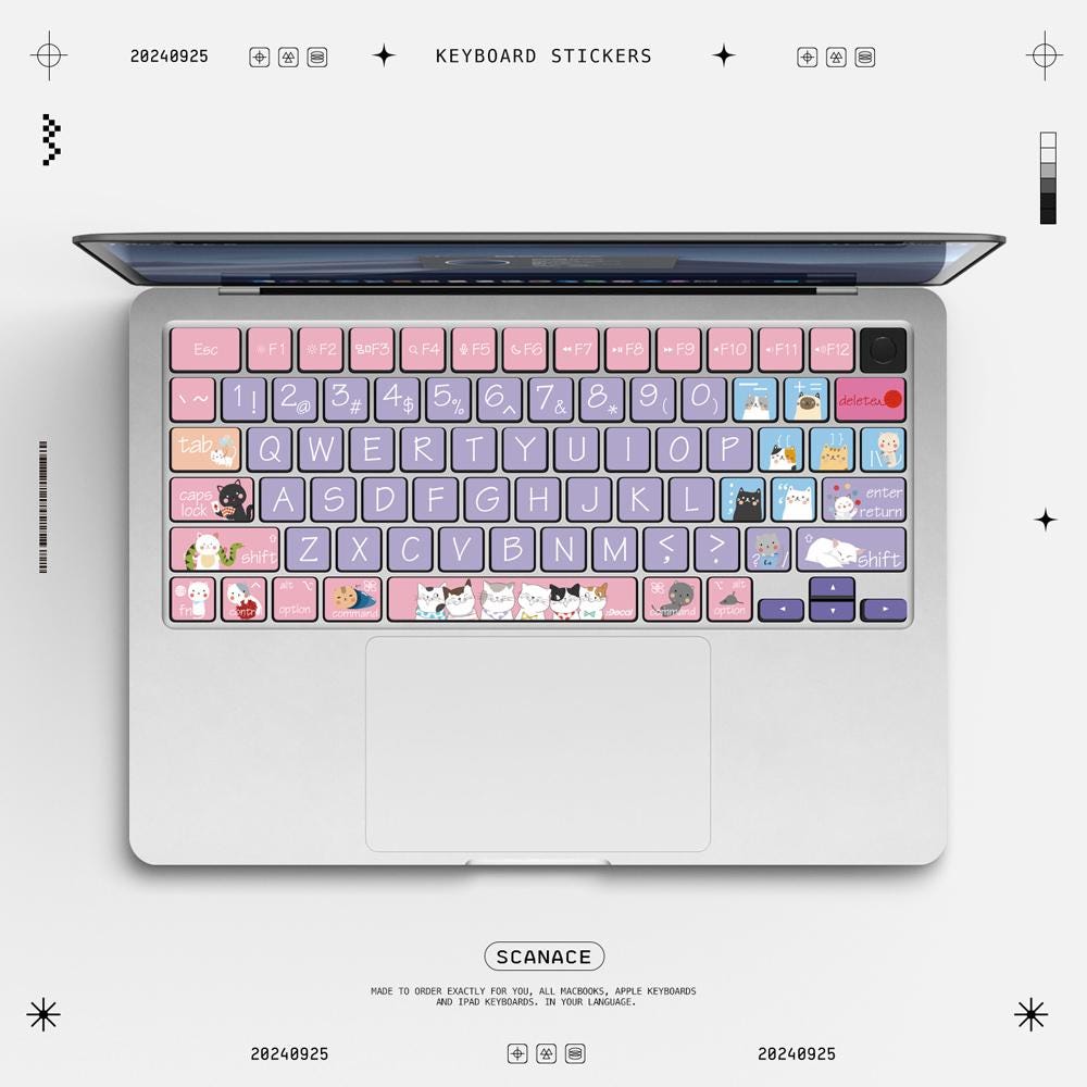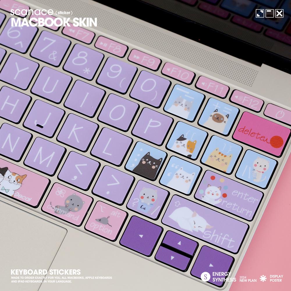 Cat Macbook Keyboard Decal: Playful Laptop Stickers For MacBook Air 13" M4 2025 Pro 13 14 16 M4 2024 Cover