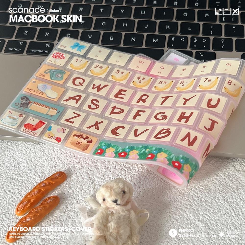 Butter Bear Macbook Keyboard Cover: Silicone Decal, Waterproof For MacBook Air 13" M4 2025 Pro 13 14 16 M4 2024 Cover