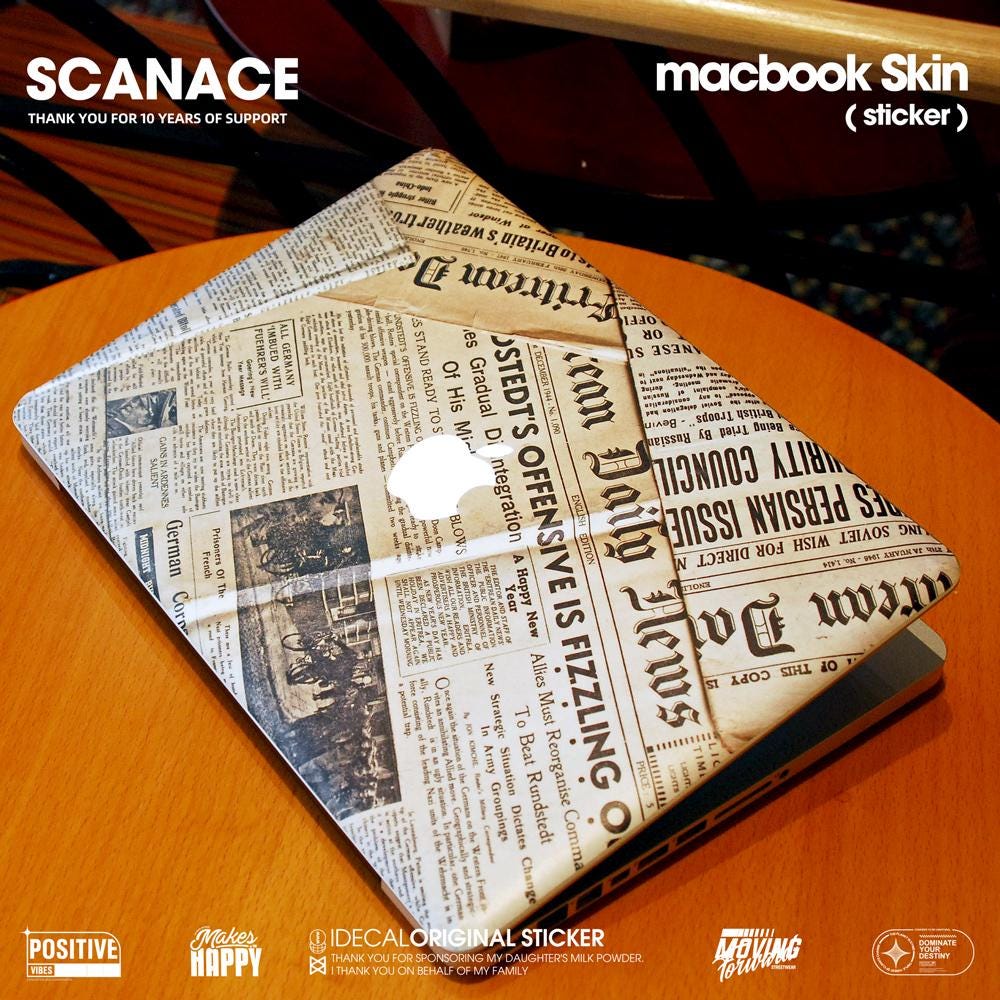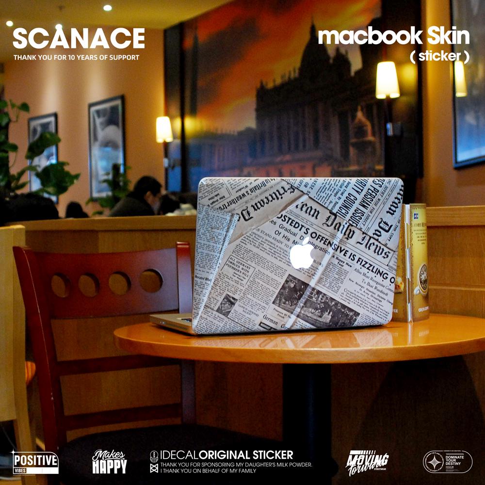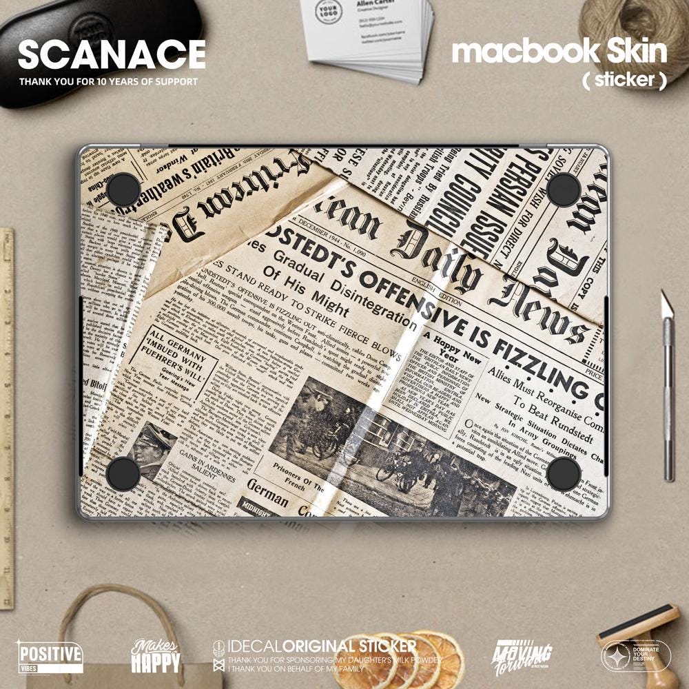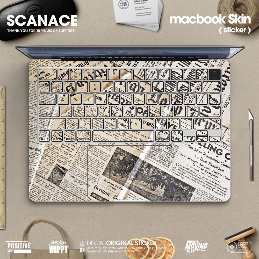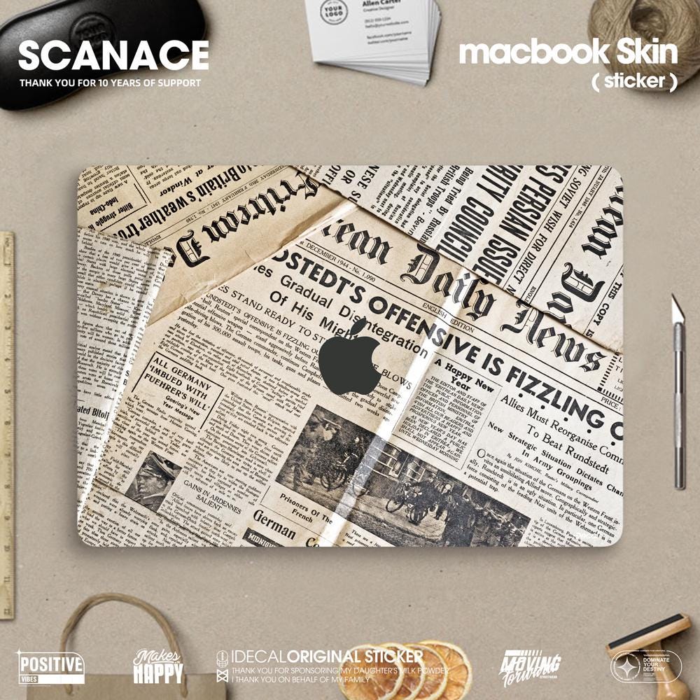 Newspaper Macbook Skin: Vintage Newsprint Vinyl Decal MacBook Air 13" M4 2025 Pro 13 14 16 M4 2024 sticker customizable
