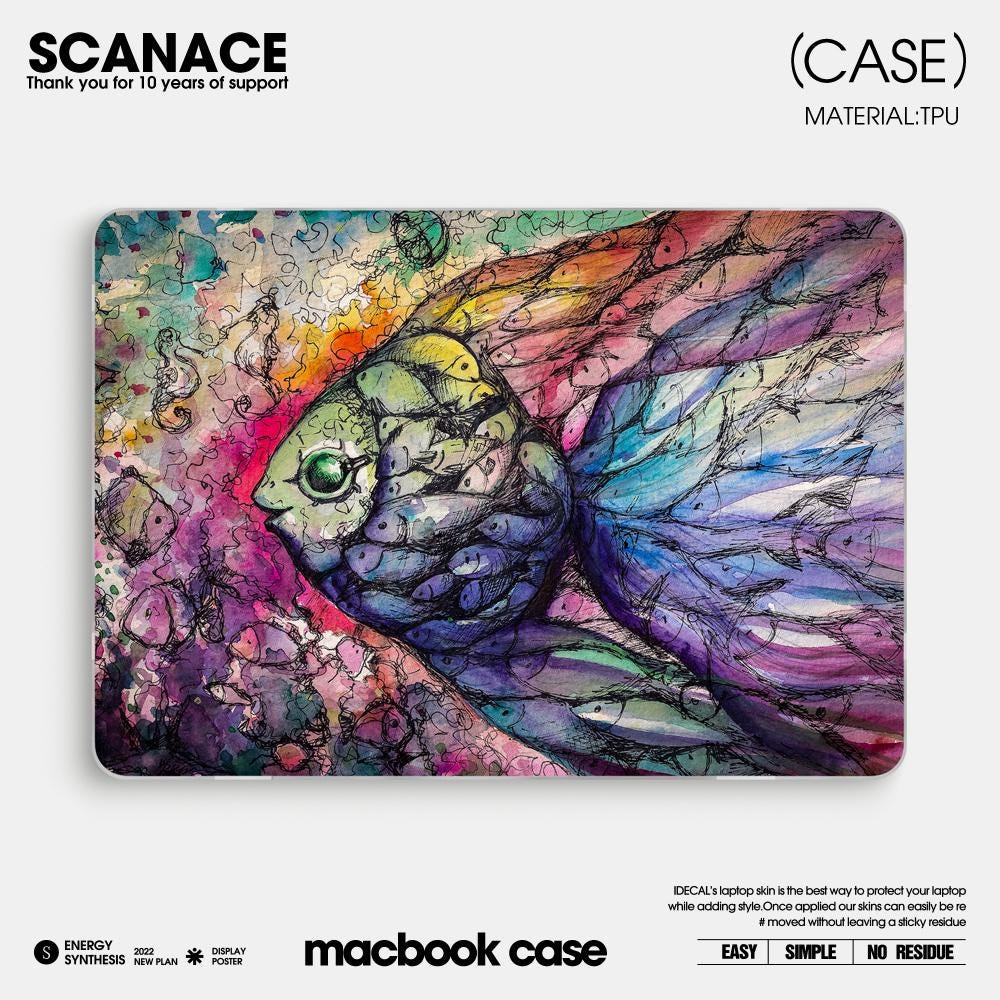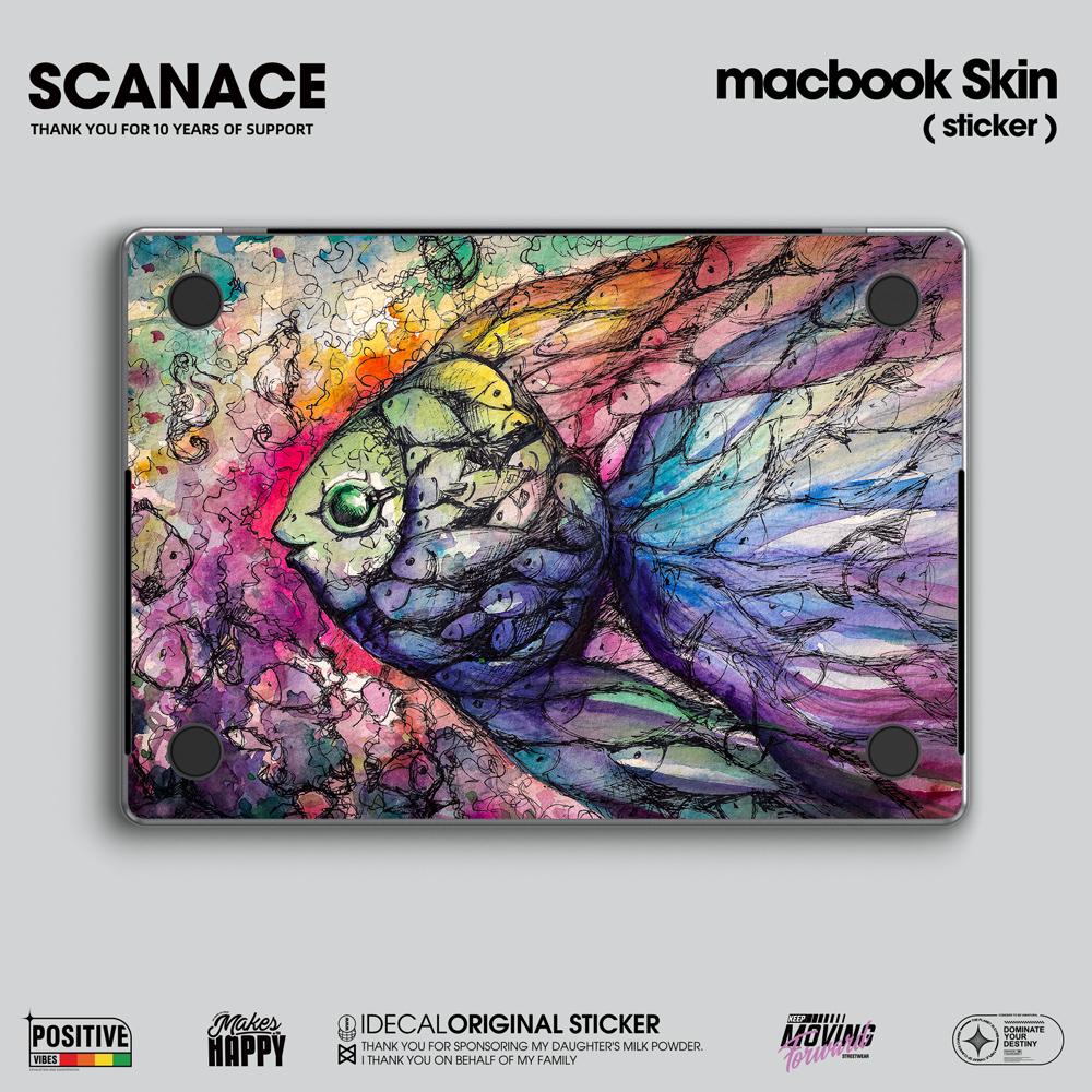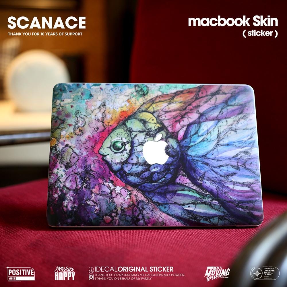Graffiti Fish Macbook Decal: Matte Vinyl Laptop Skin MacBook Air 13" M4 2025 Pro 13 14 16 M4 2024 sticker customizable