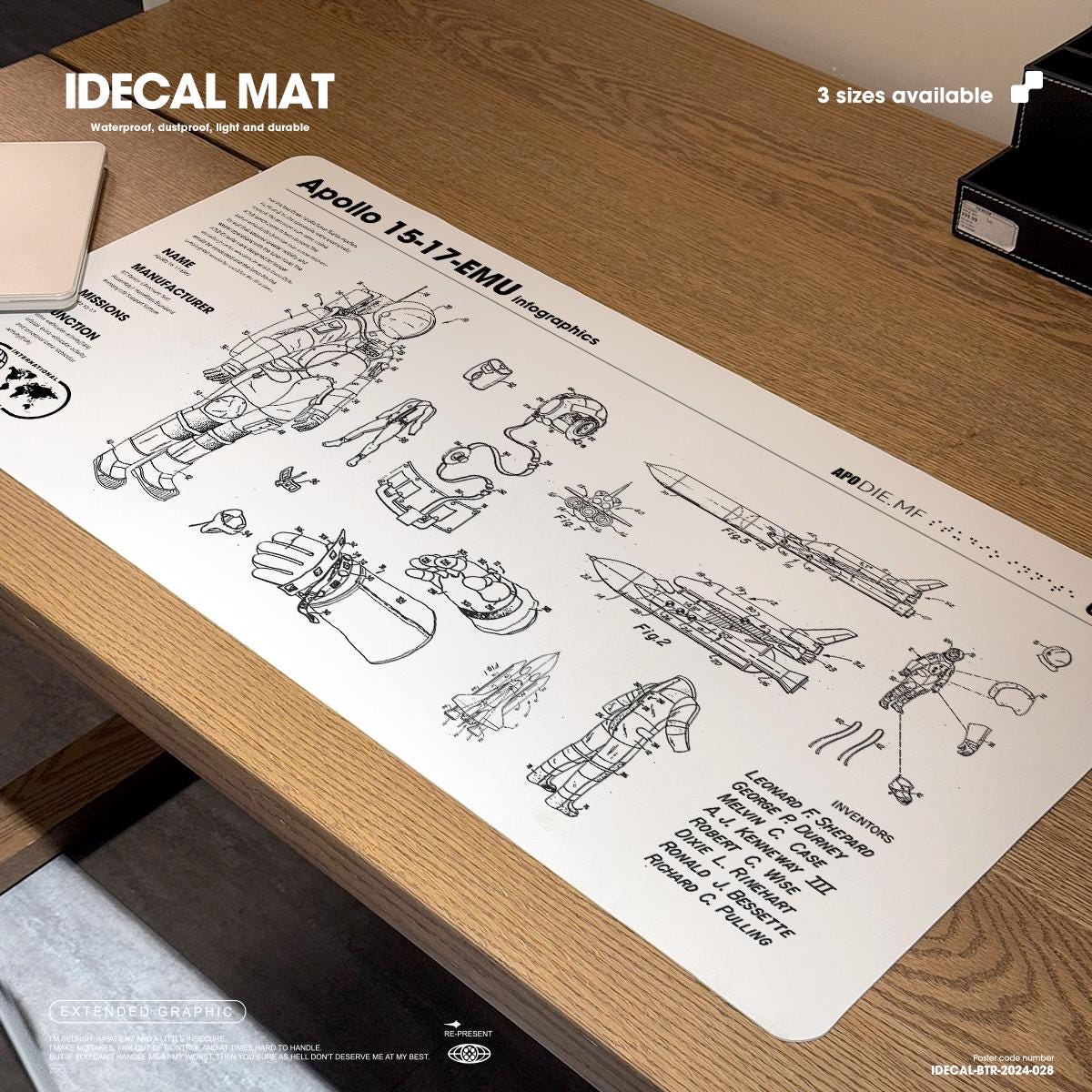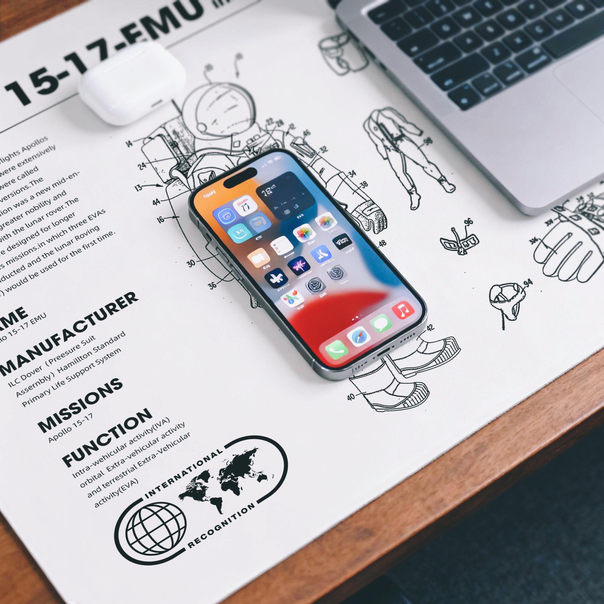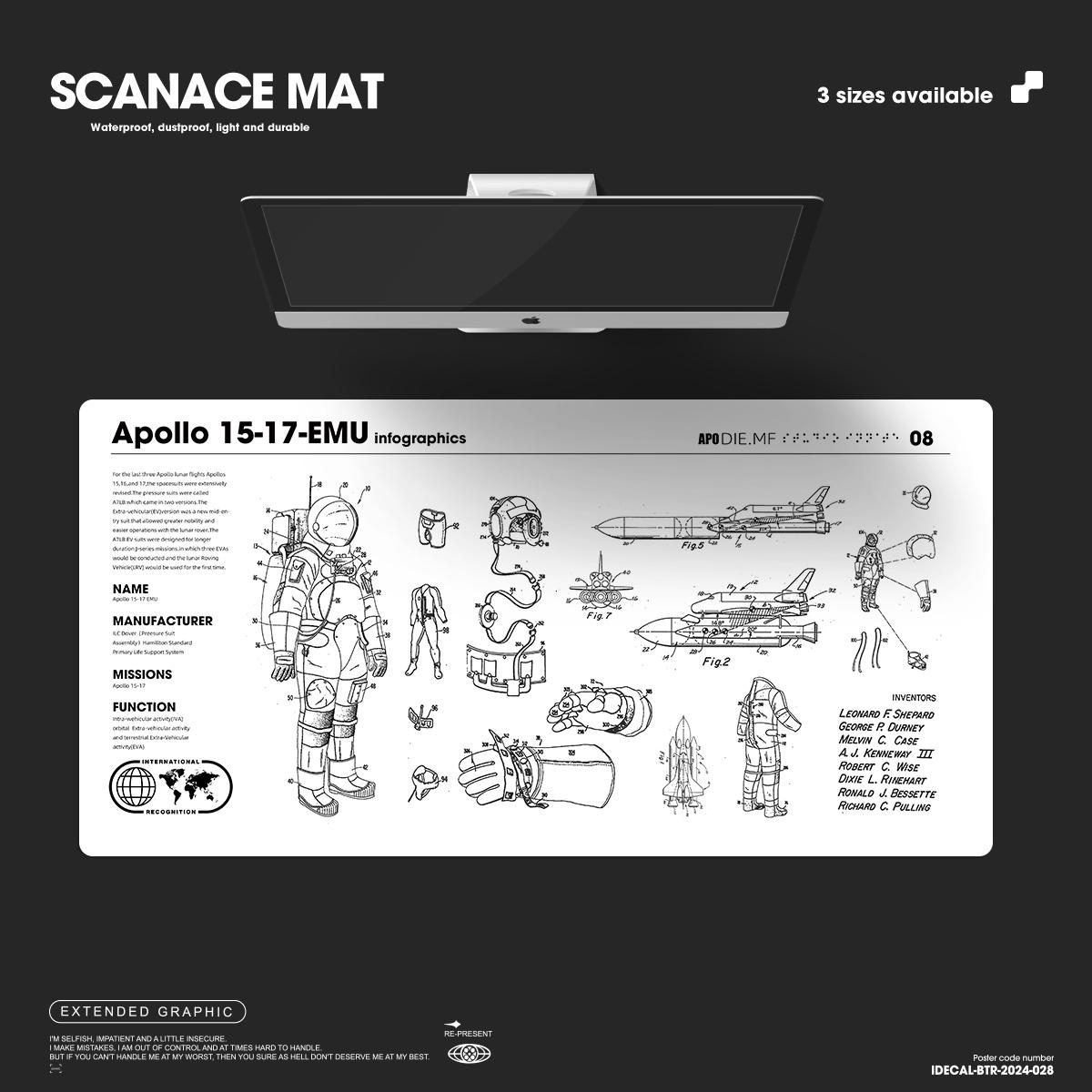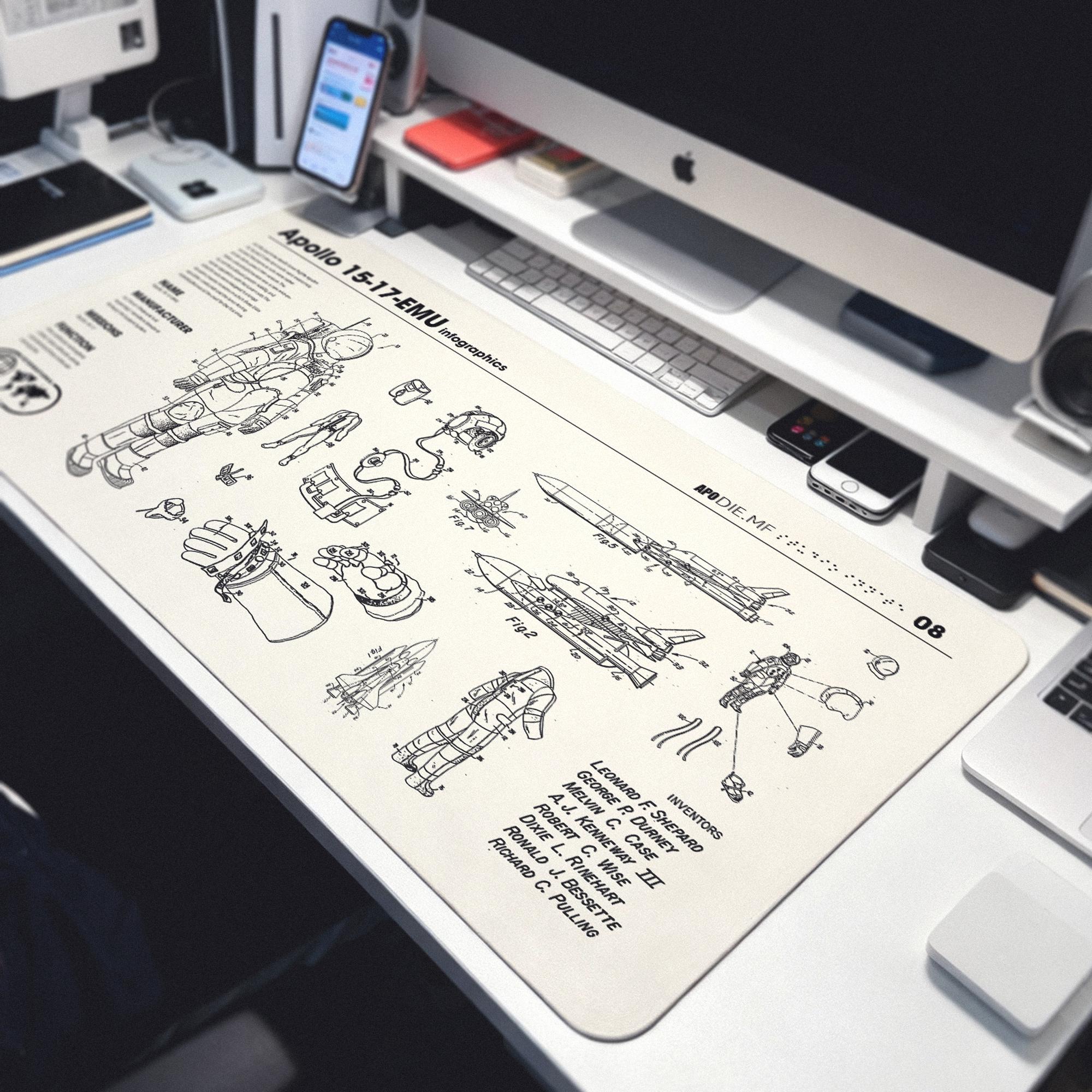 Astronaut Desk Mat: Apollo Infographics, Waterproof PU Leather Thin leather desk pad, Soft office mat, White leather desk cover