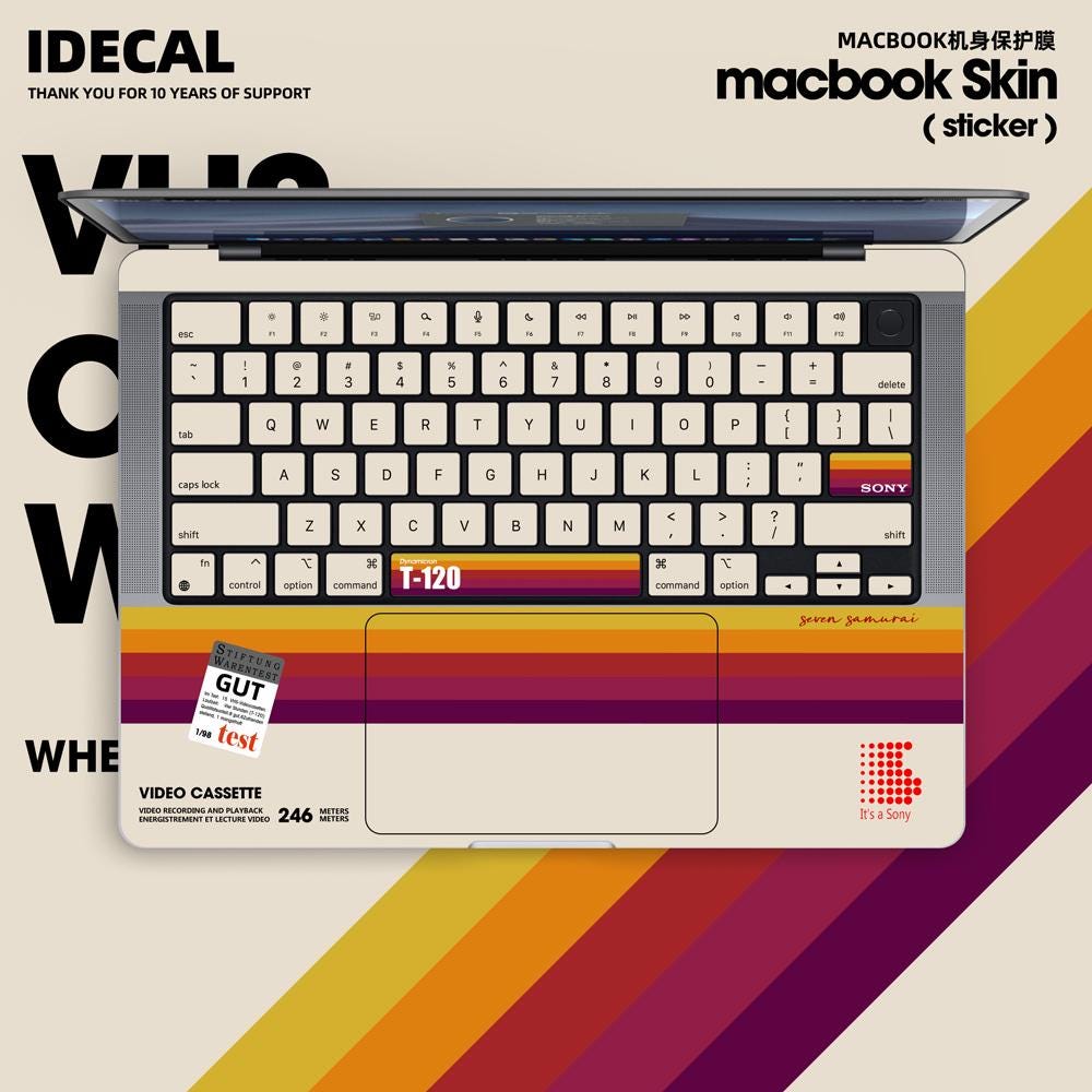 Retro Cassette Tape for Macbook Decal: Retro M2/Pro/Air Laptop Skin for MacBook Air 13" M3 2025 Pro 13 14 16 M4 2024 sticker customizable