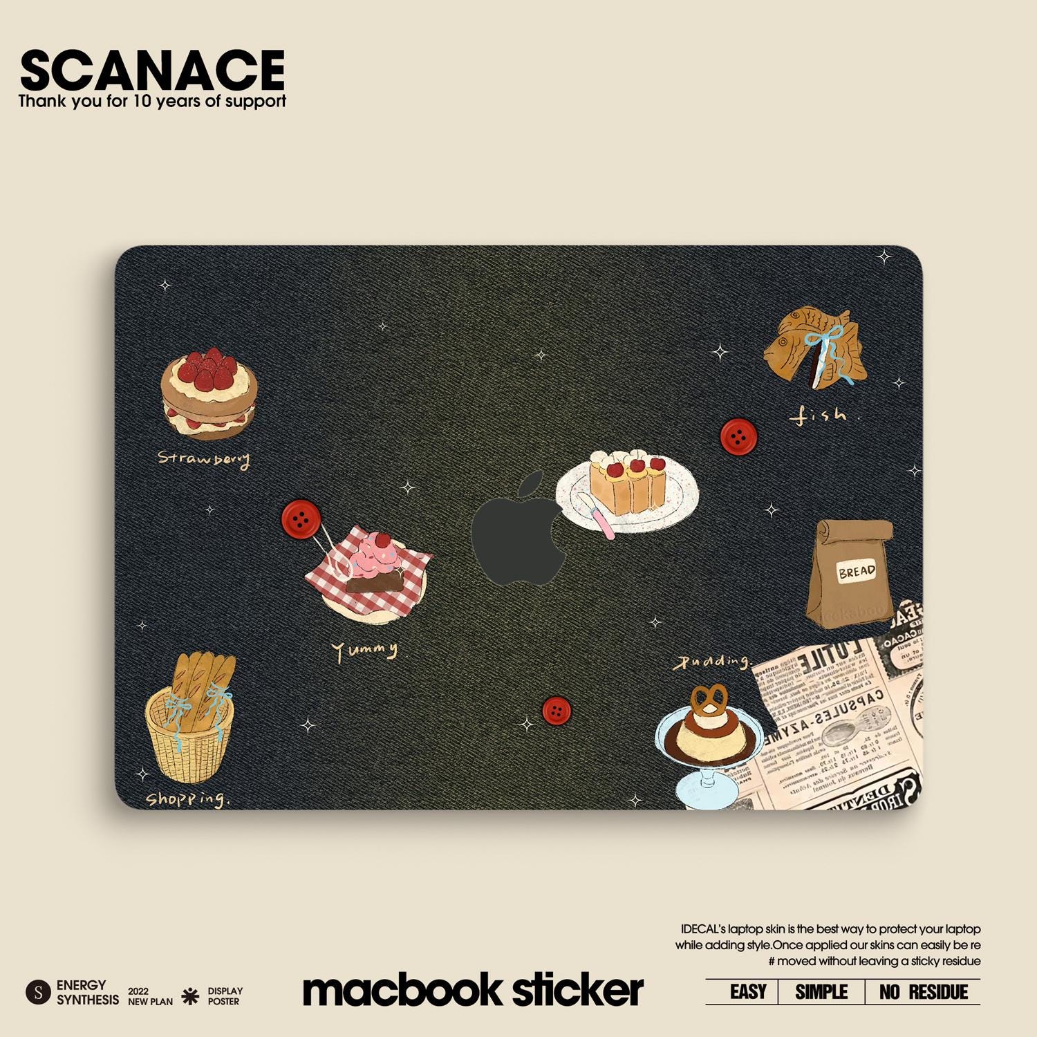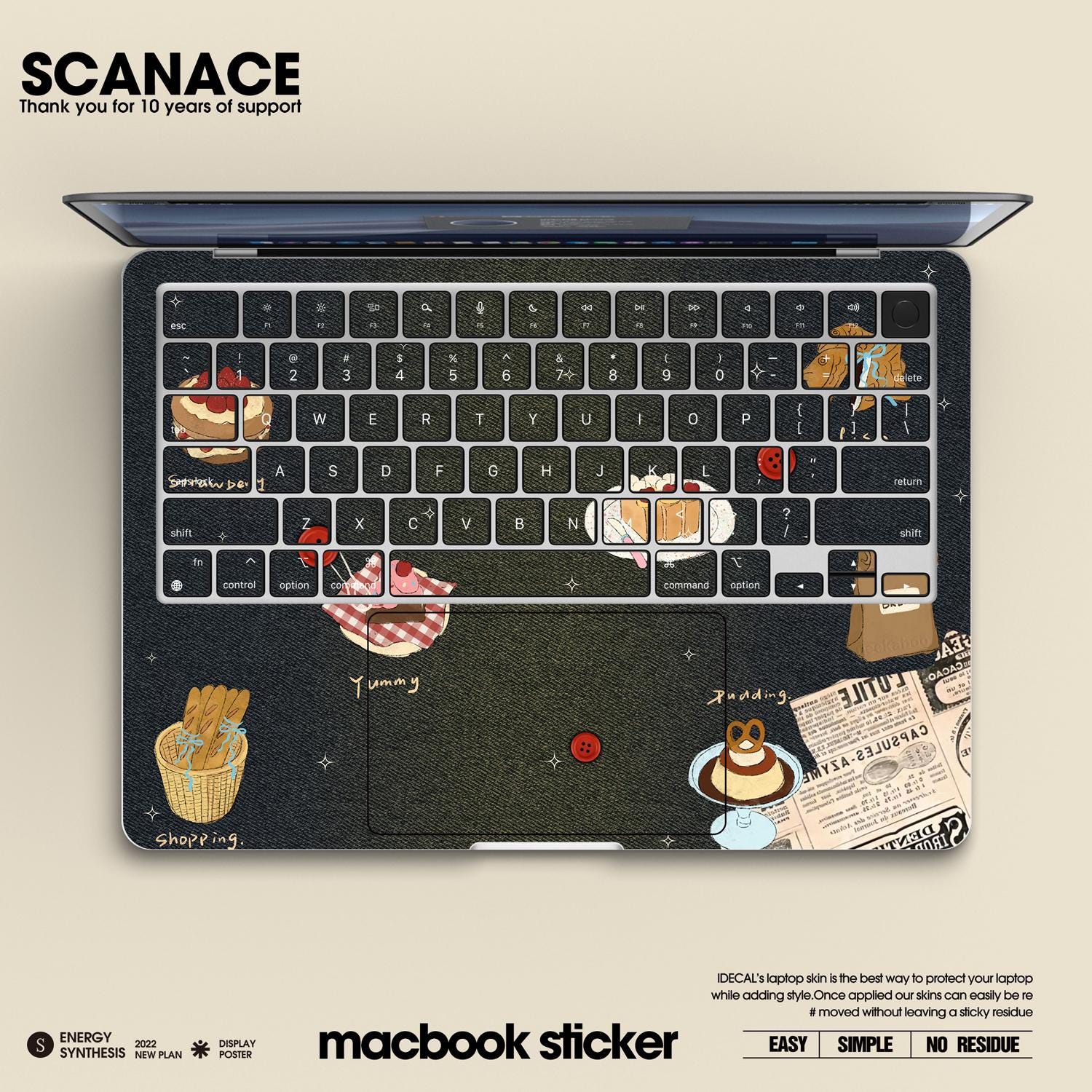 Denim Macbook Decal: Food Theme Vinyl Skin, No Residue MacBook Air 13" M4 2025 Pro 13 14 16 M4 2024 sticker