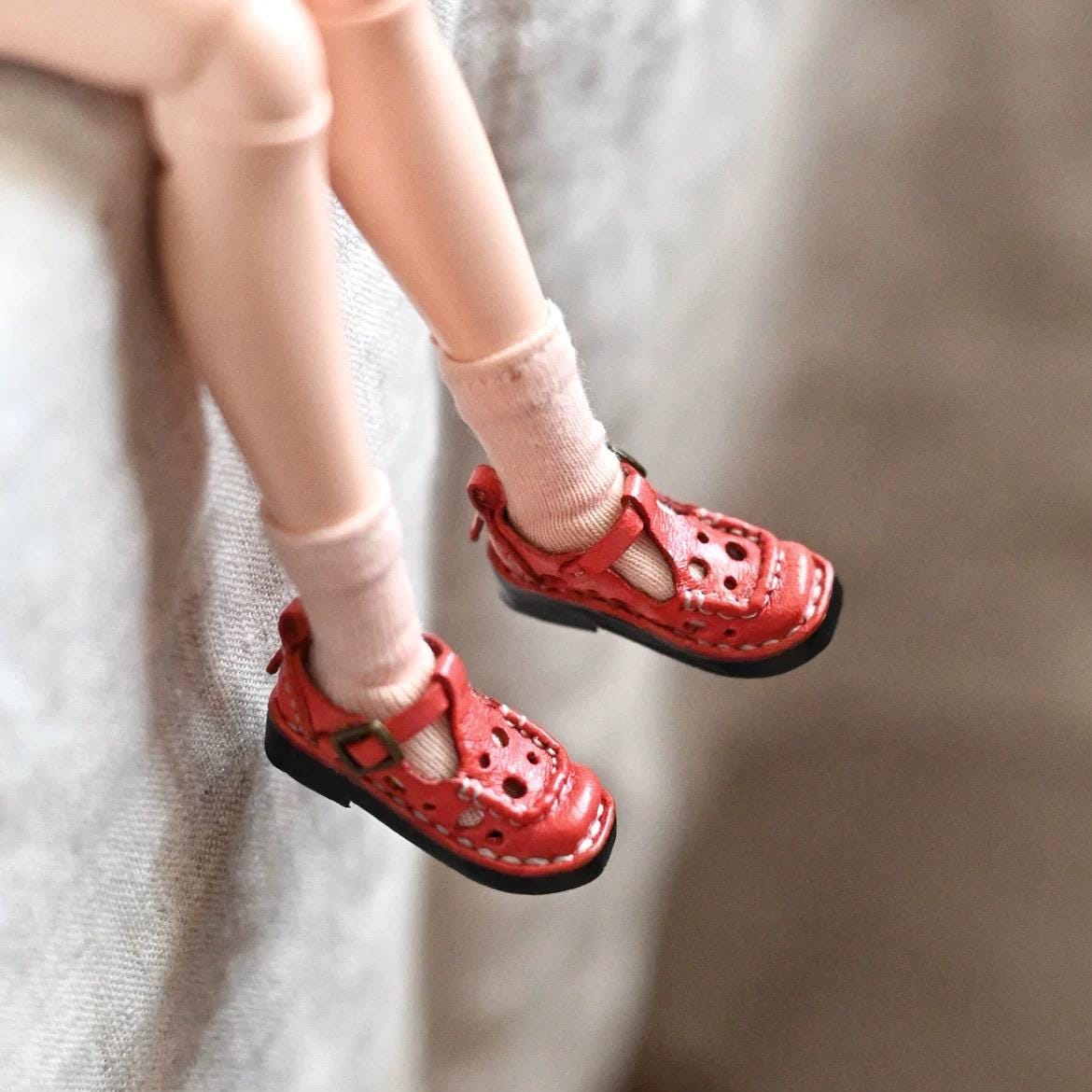 Discover the perfect blend of vintage charm and artisanal craftsmanship with these exquisite handmade Mary Jane doll shoes! Meticulously crafted from premium genuine leather, each pair features delicate perforated detailing and contrasting stitching that captures the timeless elegance of classic footwear.