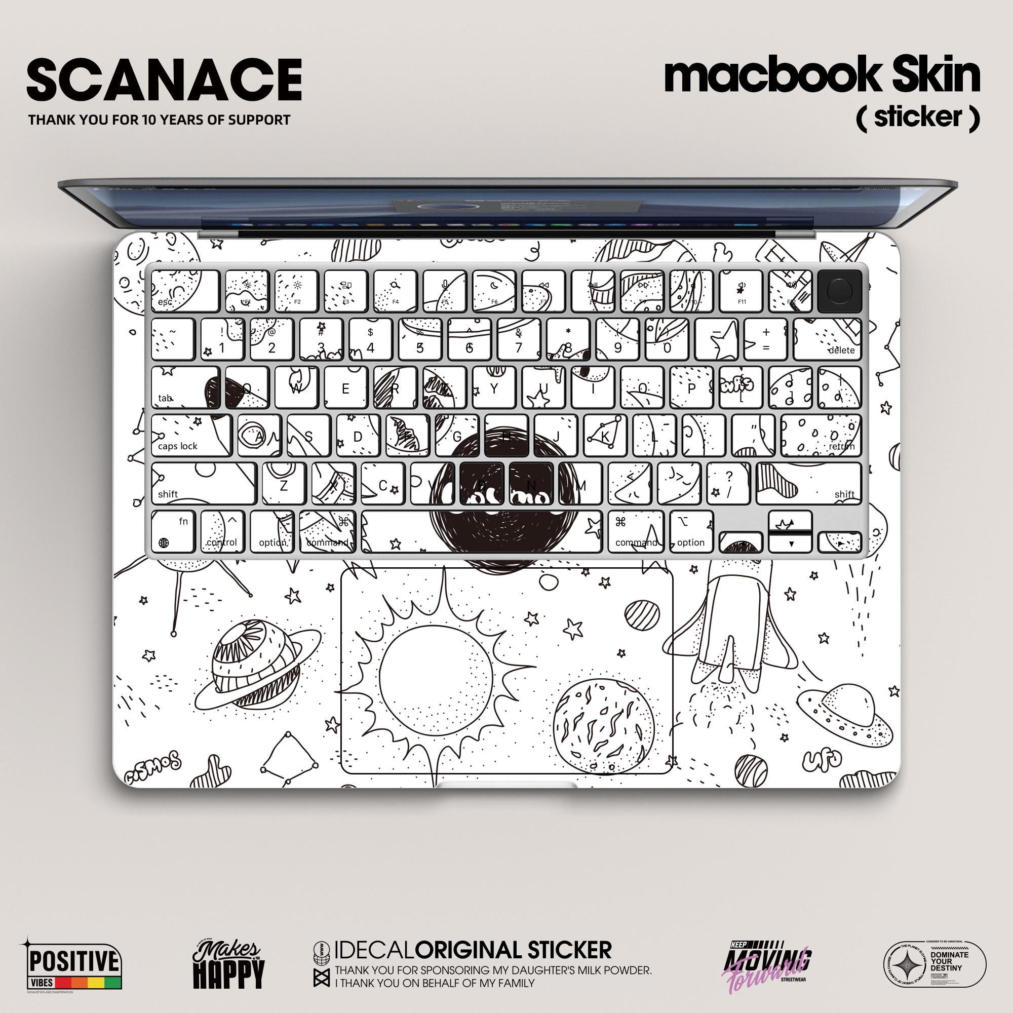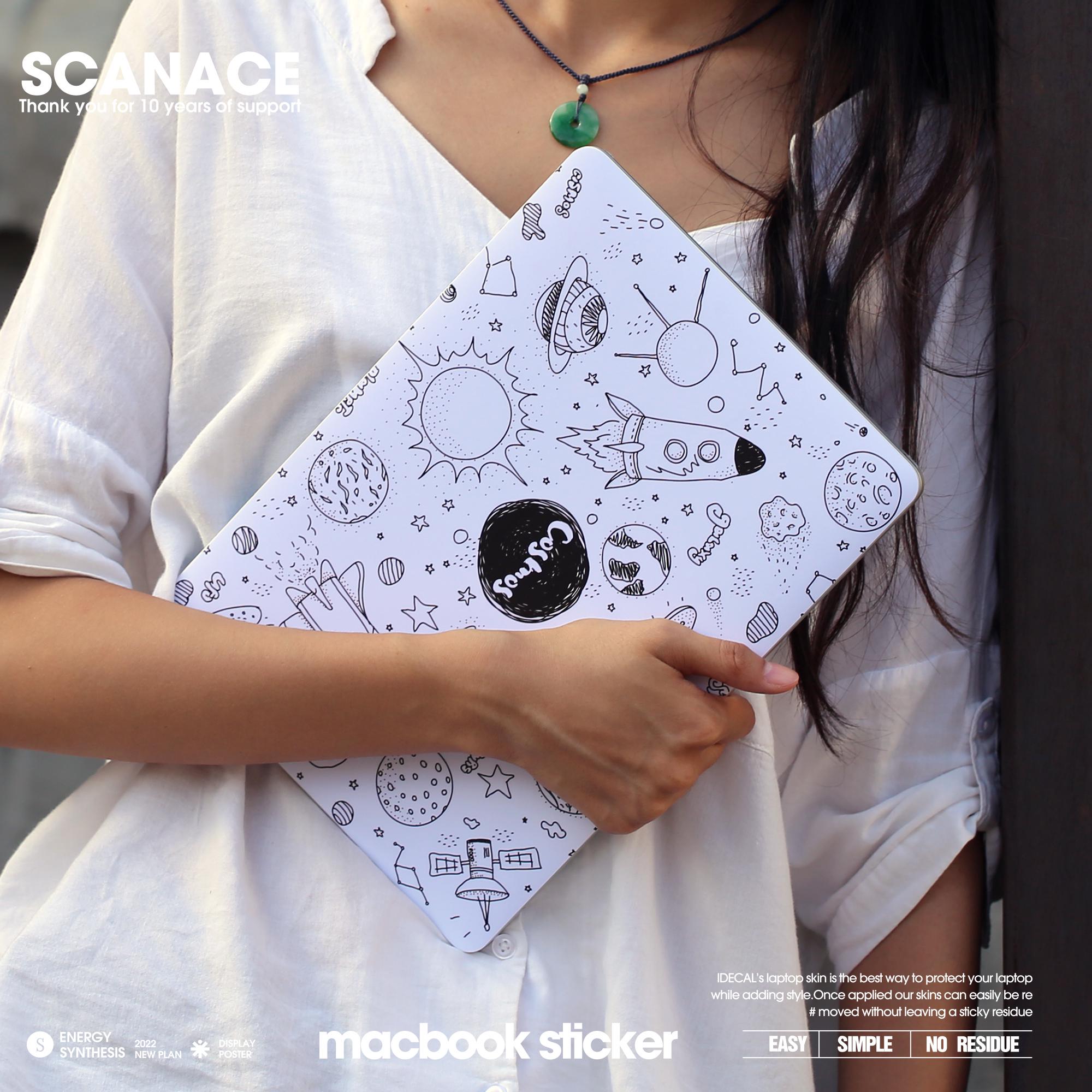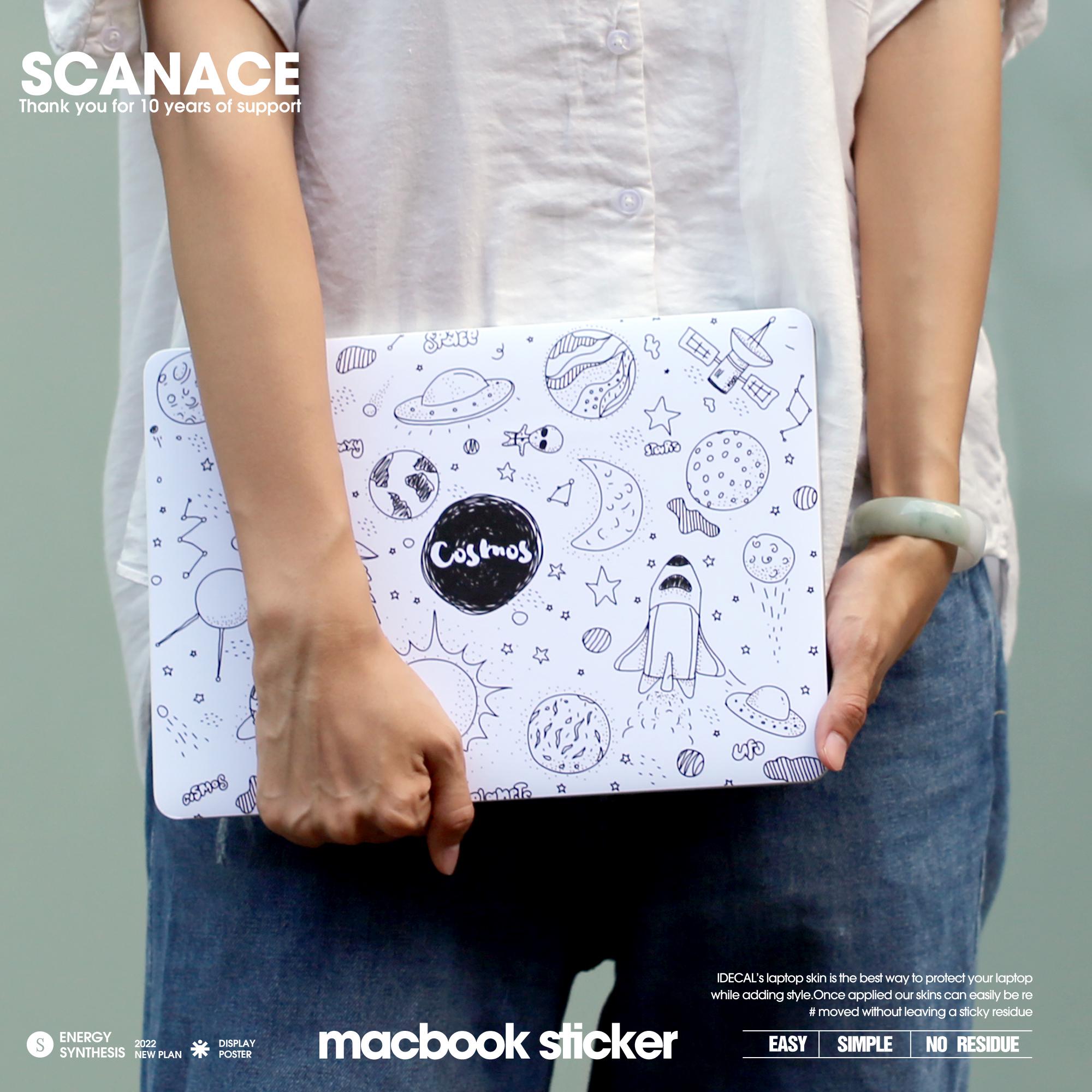 Black and White Cosmos Life Illustration Decal, Artistic Space Skin for MacBook Air and MacBook Pro 13 14 15 16 inch, Matte Finish Sticker