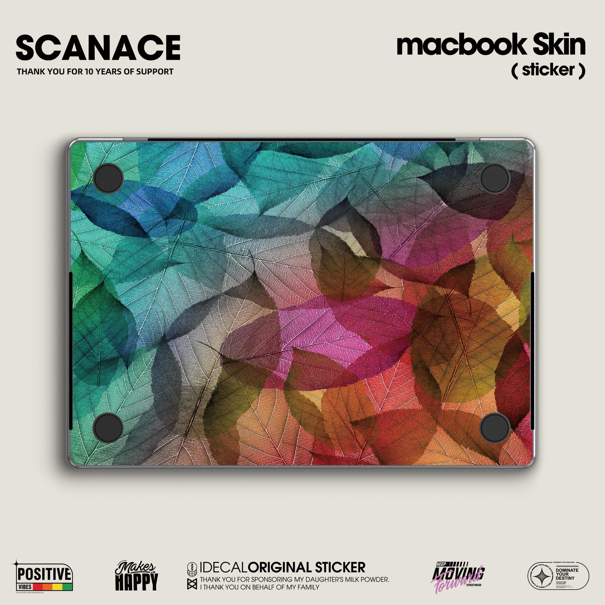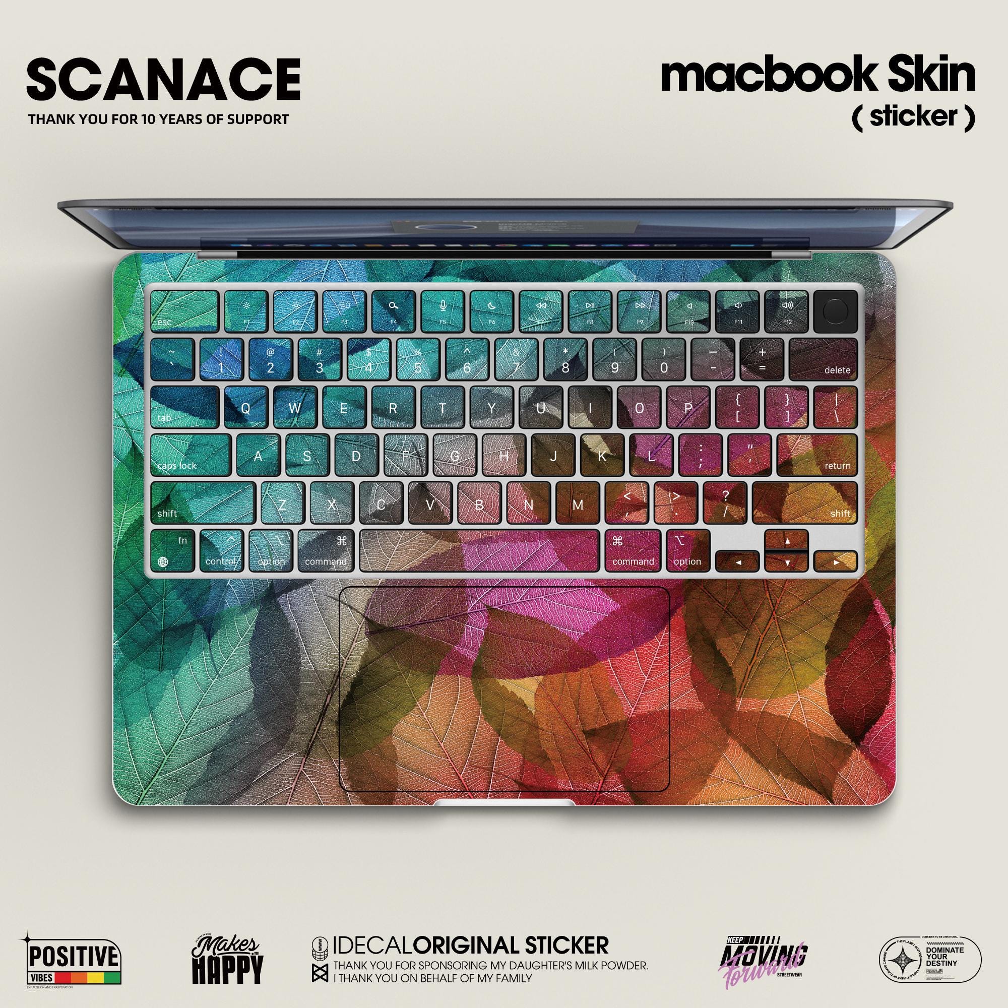 Colorful Tropical Leaf decal for MacBook Air13,Laptop Decal, Watercolor Leaf Pattern Vinyl Skin for 2025 M4 MacBook Pro14/16