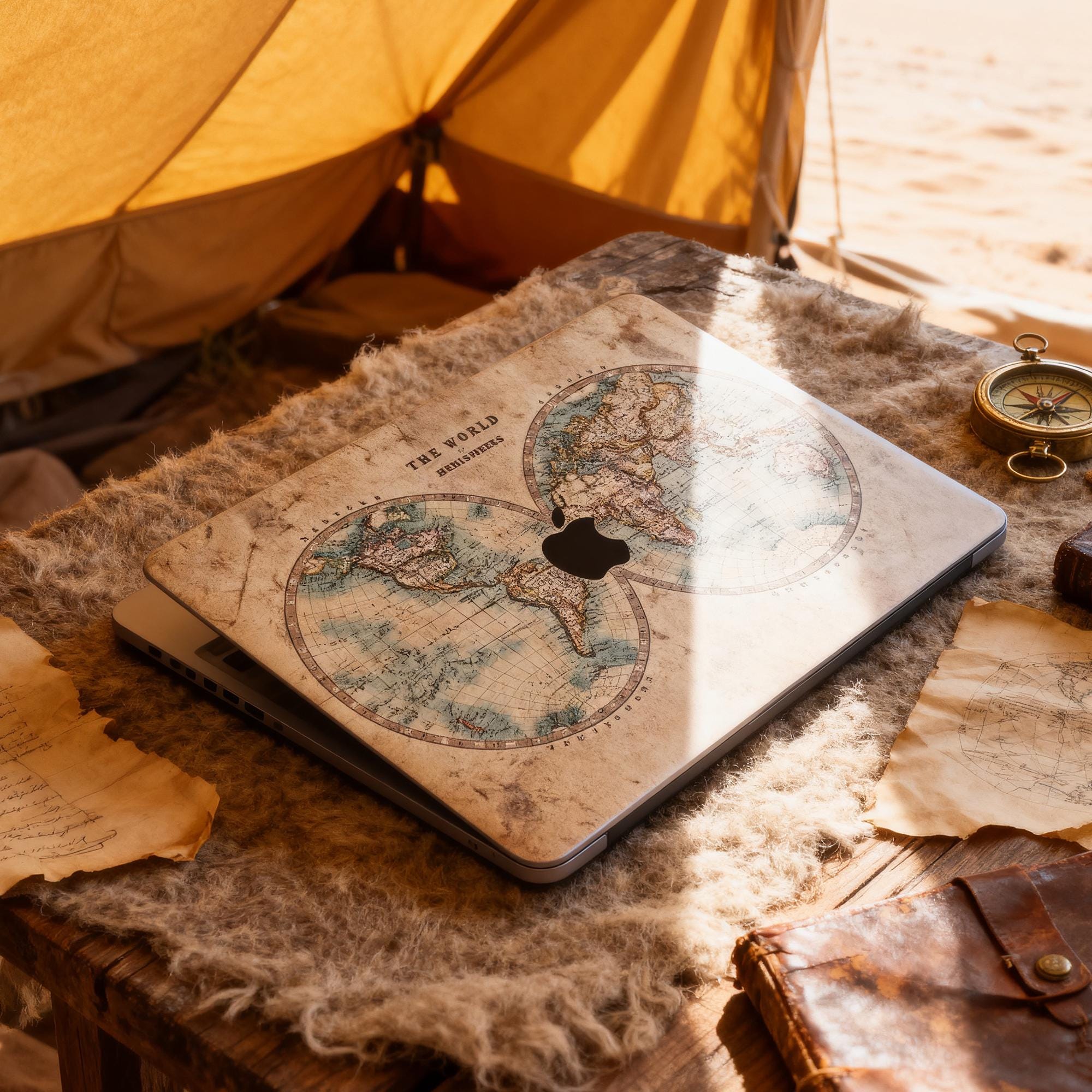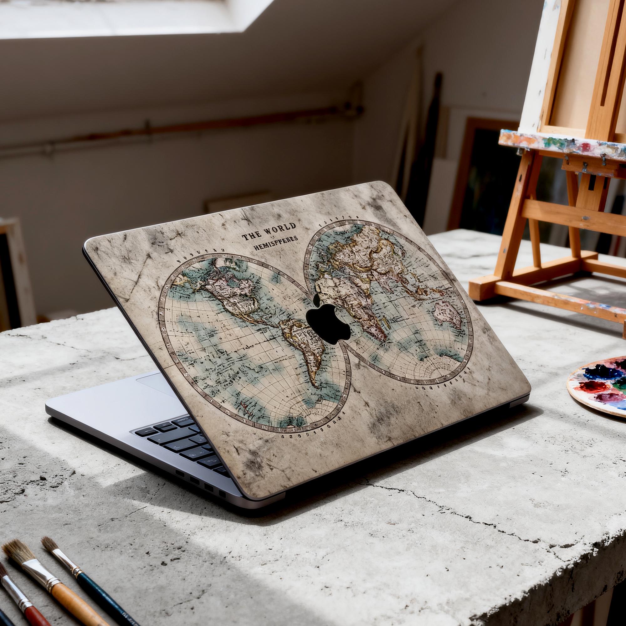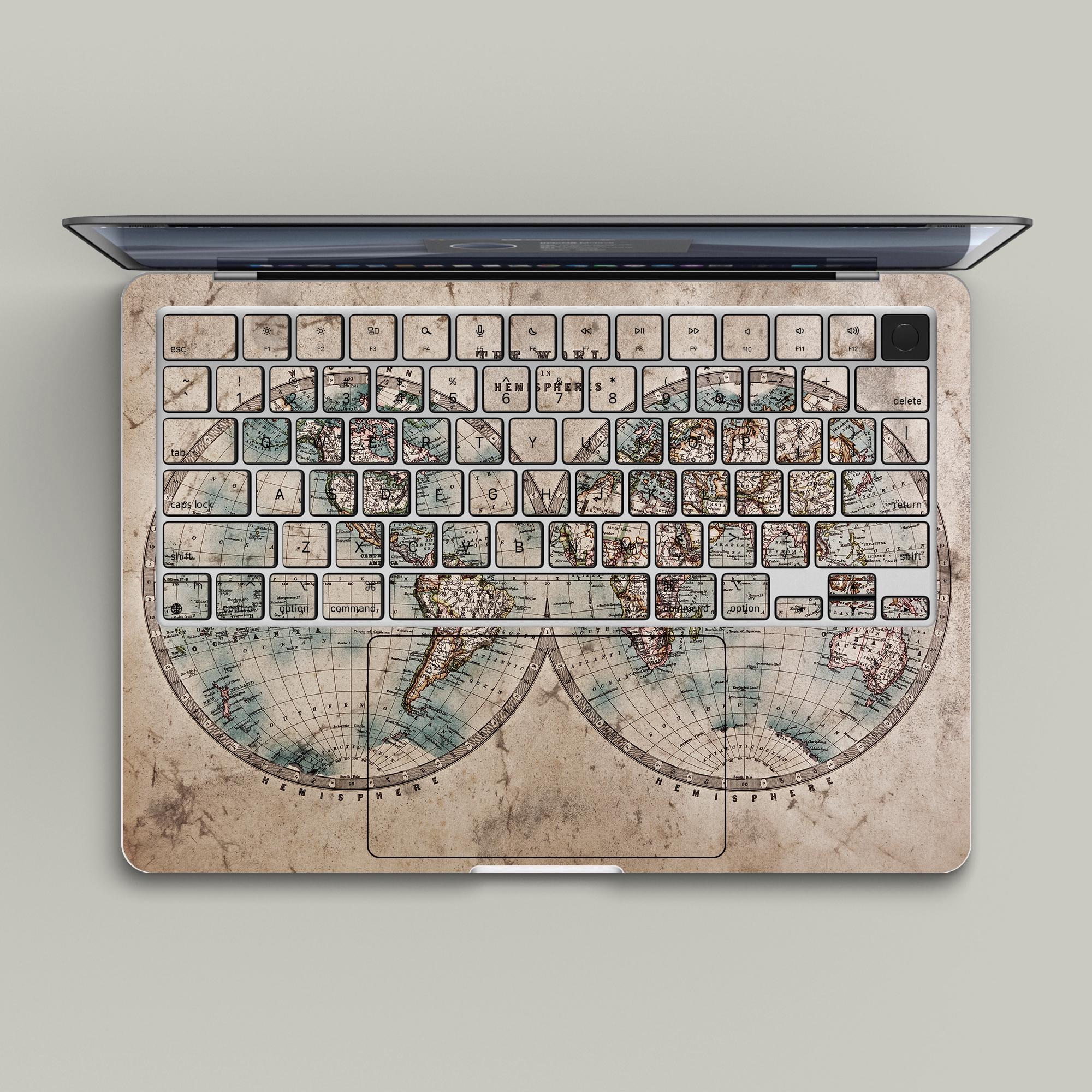 Vintage Map MacBook decal:Matte texture, customizable, no residual glue for MacBook Pro 14/16 M4 2025 & MacBook Air 13/15