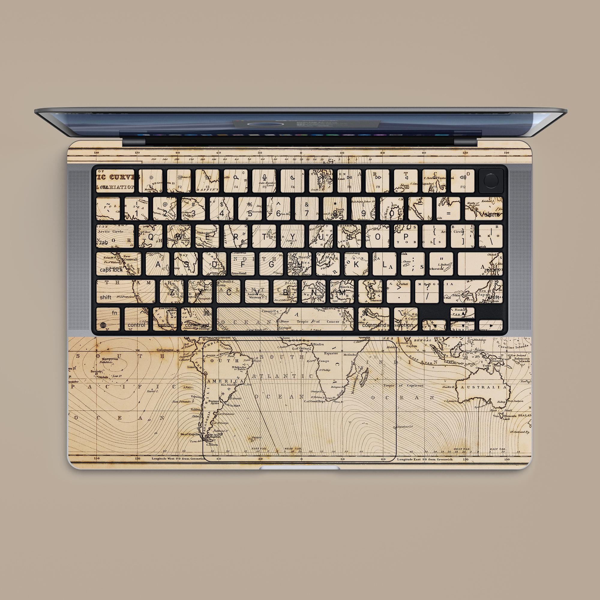 Ancient maps MacBook air13 decal:Matte texture, customizable, no residual glue for MacBook Pro 14/16 M4 2025 & laptop sticker air15 decals