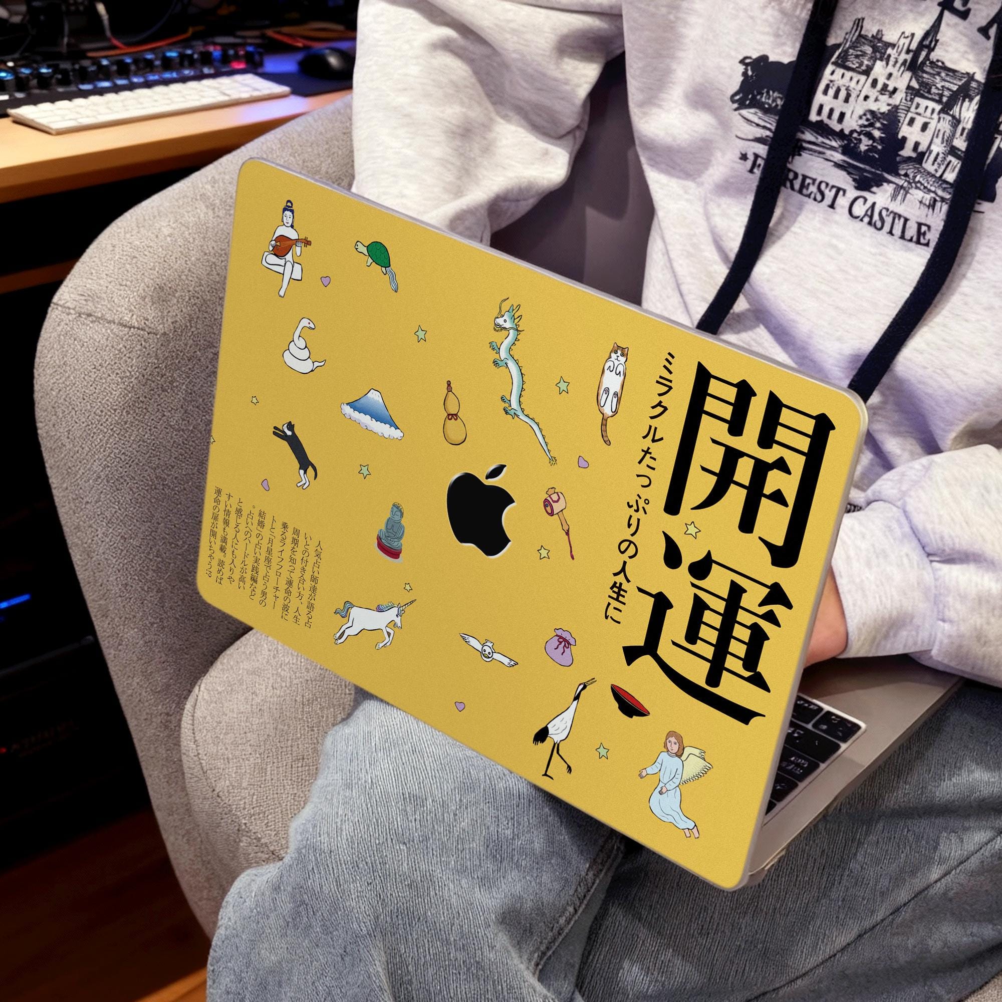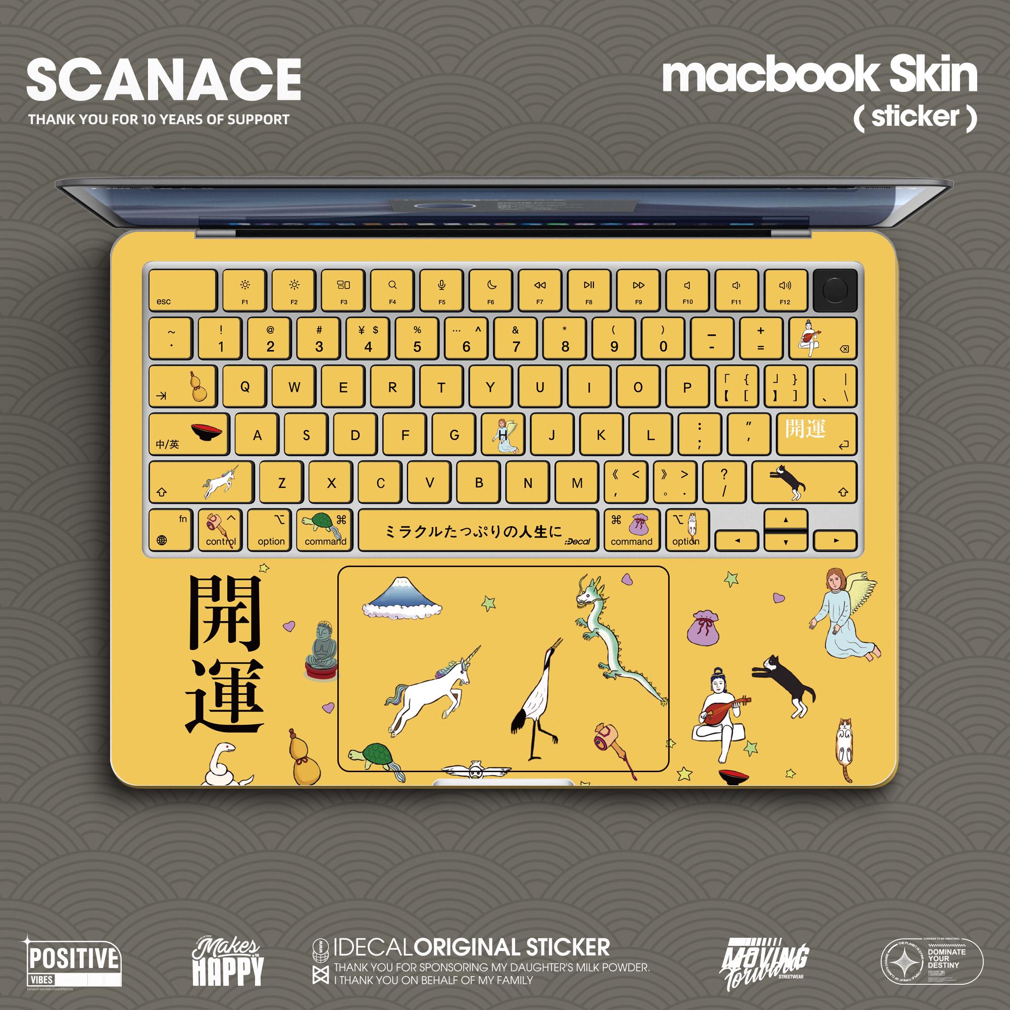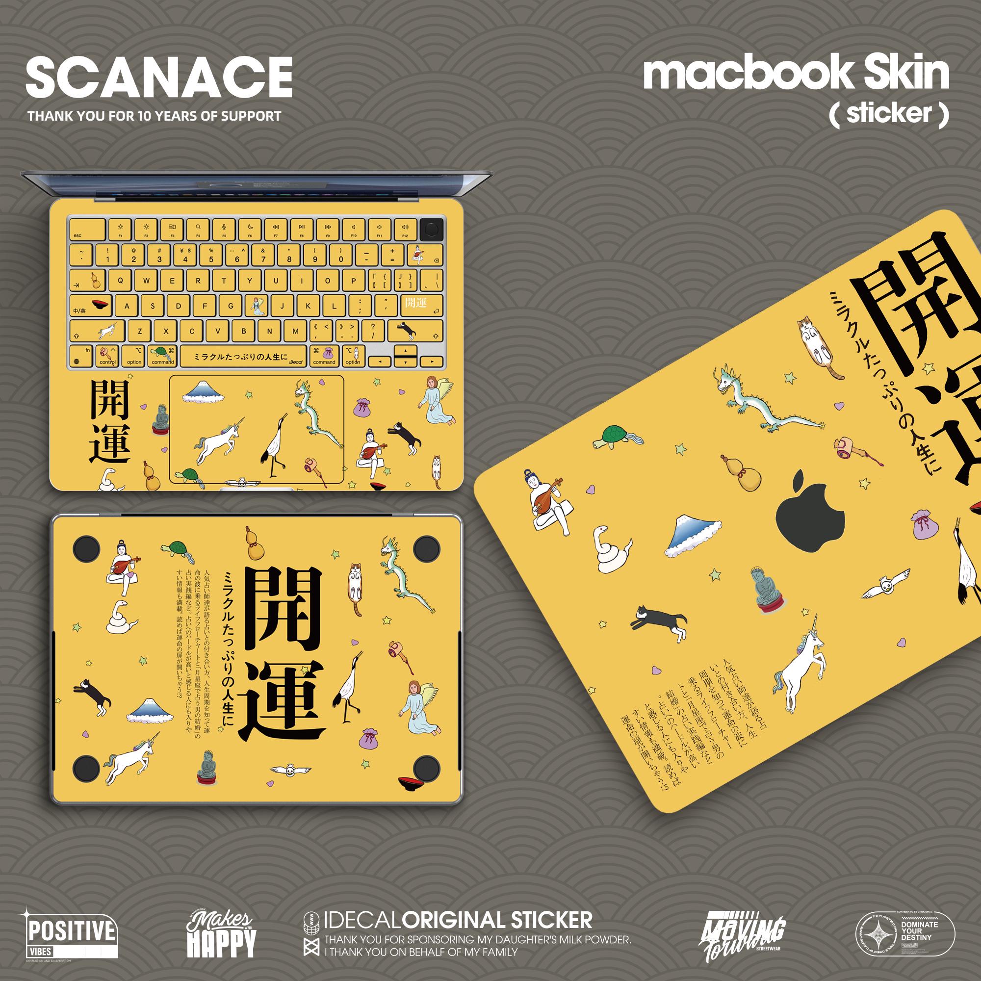 Macbook skin:Japanese characters good luck Vinyl Skin for Pro14/16 Air13/15 decal Matte texture, anti-fingerprint customizable 2025 M4/M5