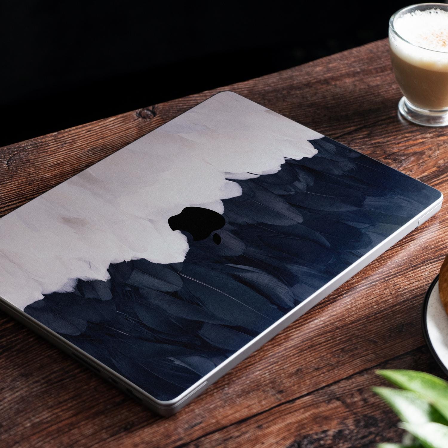 Dual-Tone Feather decal for MacBook Air 13/15 M4 MacBook Pro 14 16 M4 2025, Minimalist Feather Texture Vinyl Skin, Matte Finish