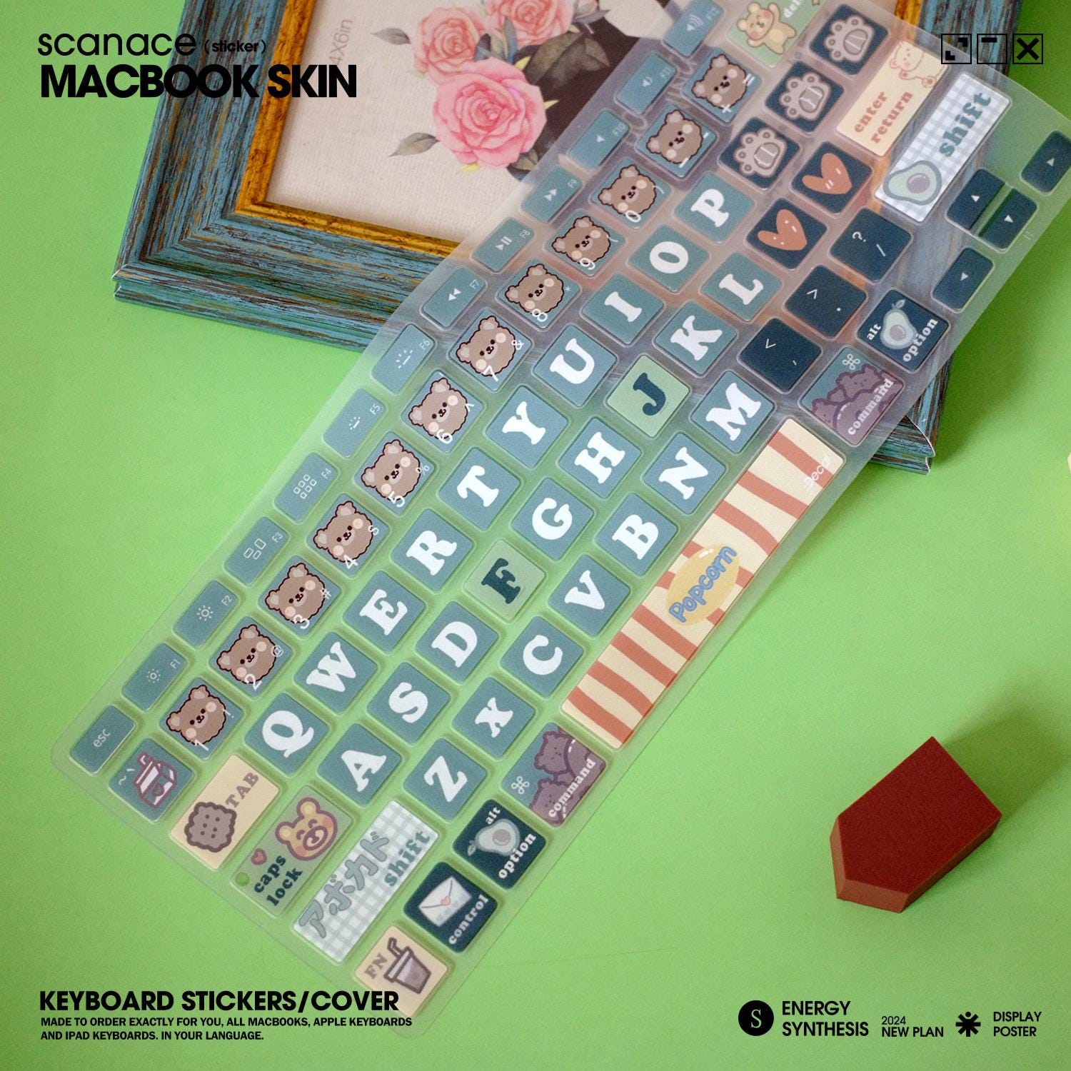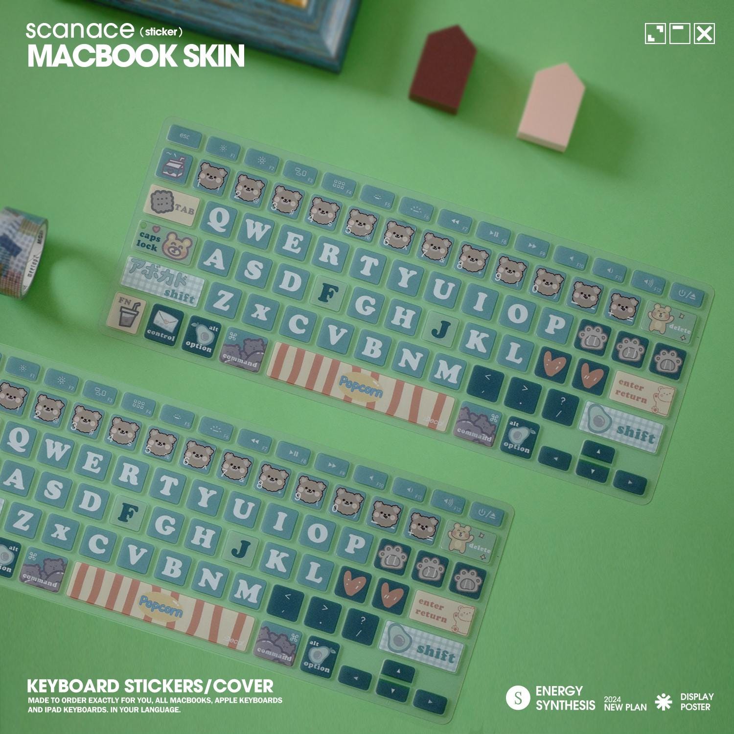 Green Bear MacBook Keyboard Cover: Silicone Protector For MacBook Air 13" M4 2025 Pro 13 14 16 M4 2024 Cover