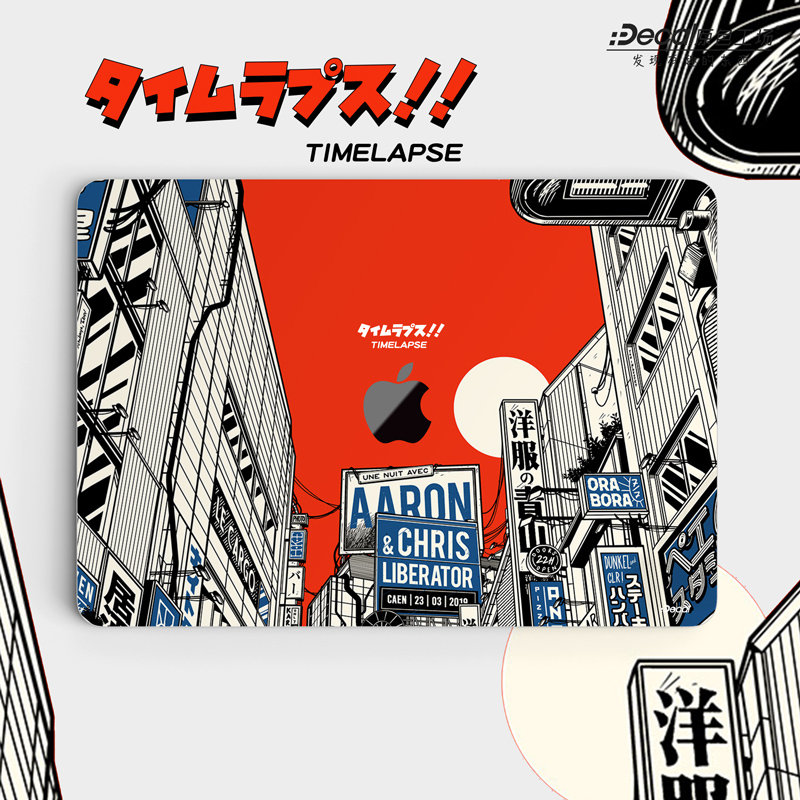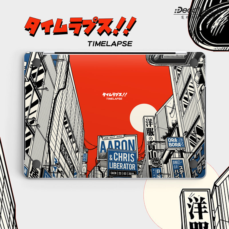 Time Lapse Macbook Decal: Retro Japanese Street Vinyl Skin MacBook Air 13" M4 2025 Pro 13 14 16 M4 2024 sticker customizable